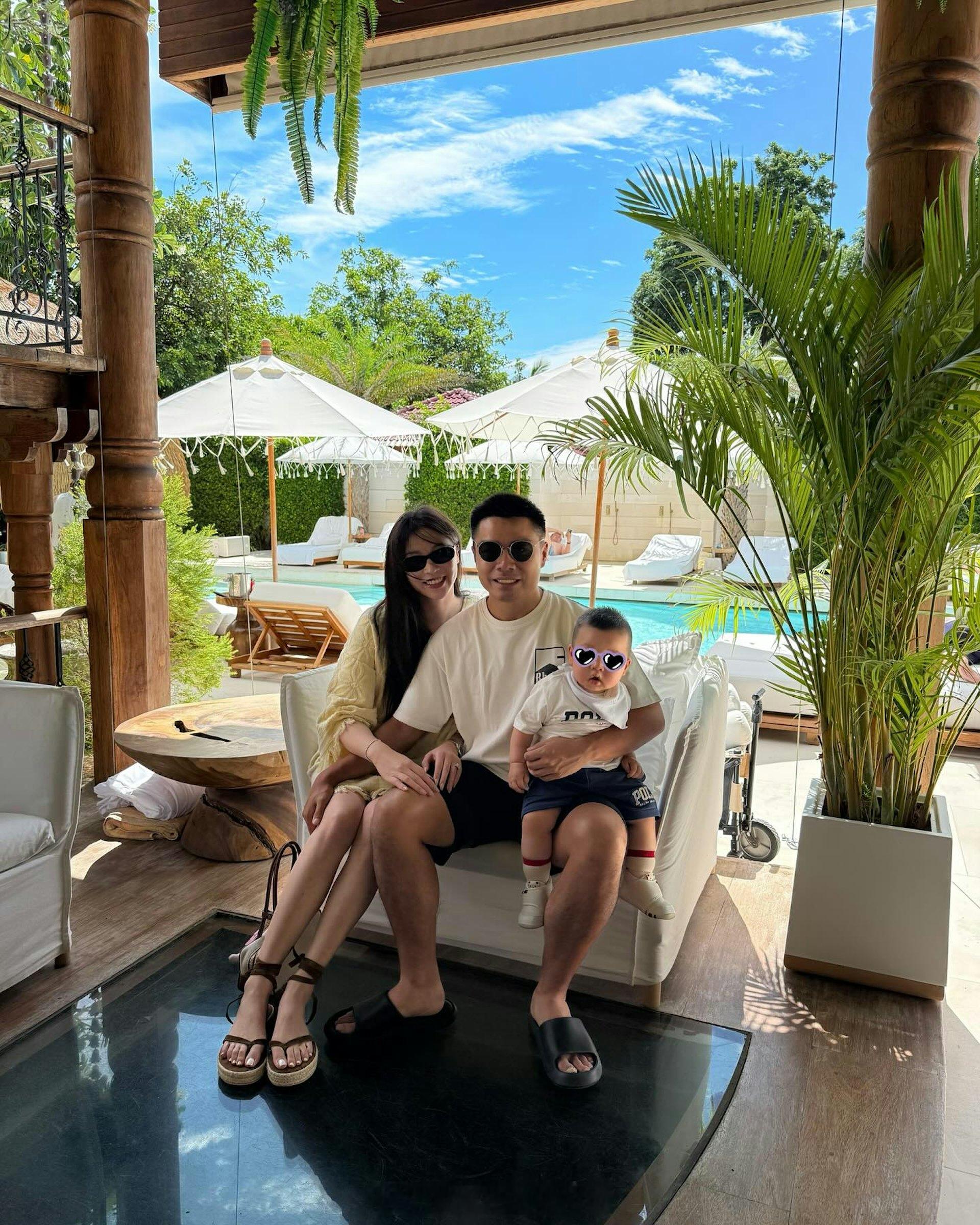莎莎太子爷郭浩泉再添男丁富贵老婆三年抱两,产后精致妆扮晒全家福