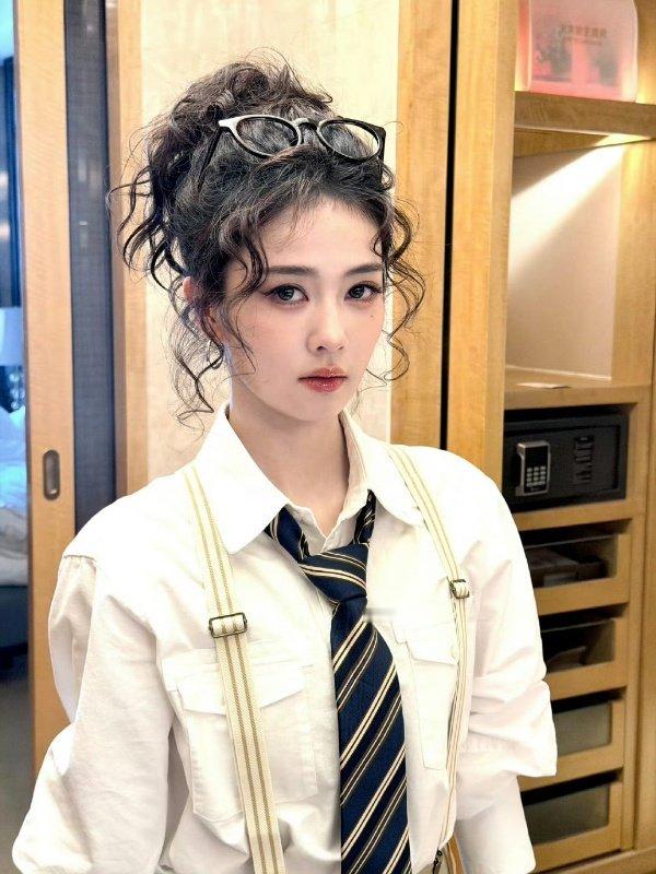 今天背带裤版白鹿好有少年感哇白鹿白衬衫背带裤造型白鹿卷发背带裤造型