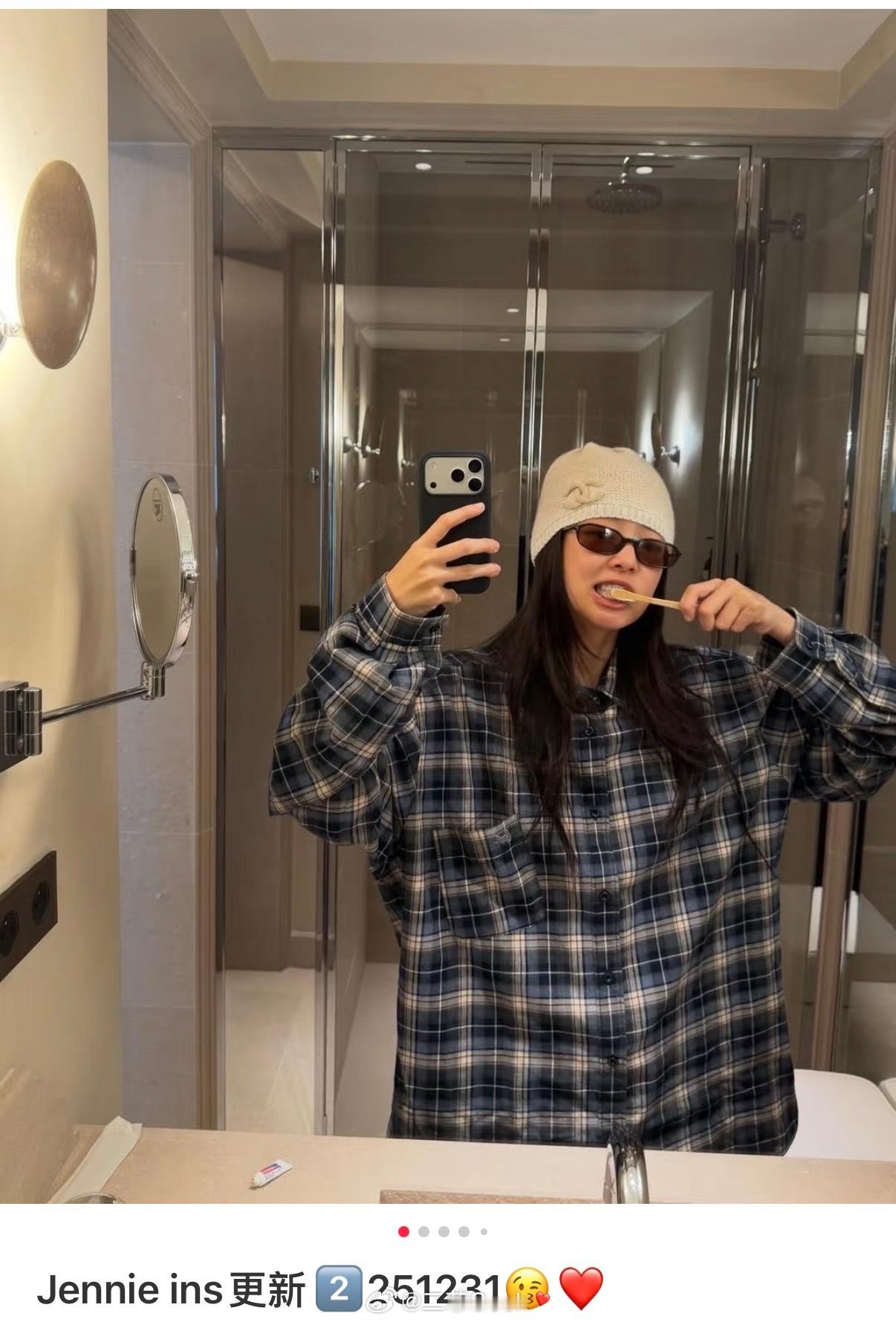 早上刷牙的时候突然想模仿一下Jennie对镜拍拍完搜Jennie照片发现动作摆错