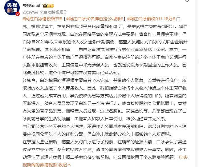 网红白冰被处罚后高调发文,这是要干啥? 4月28号,知名网红白冰被央视通报偷税漏