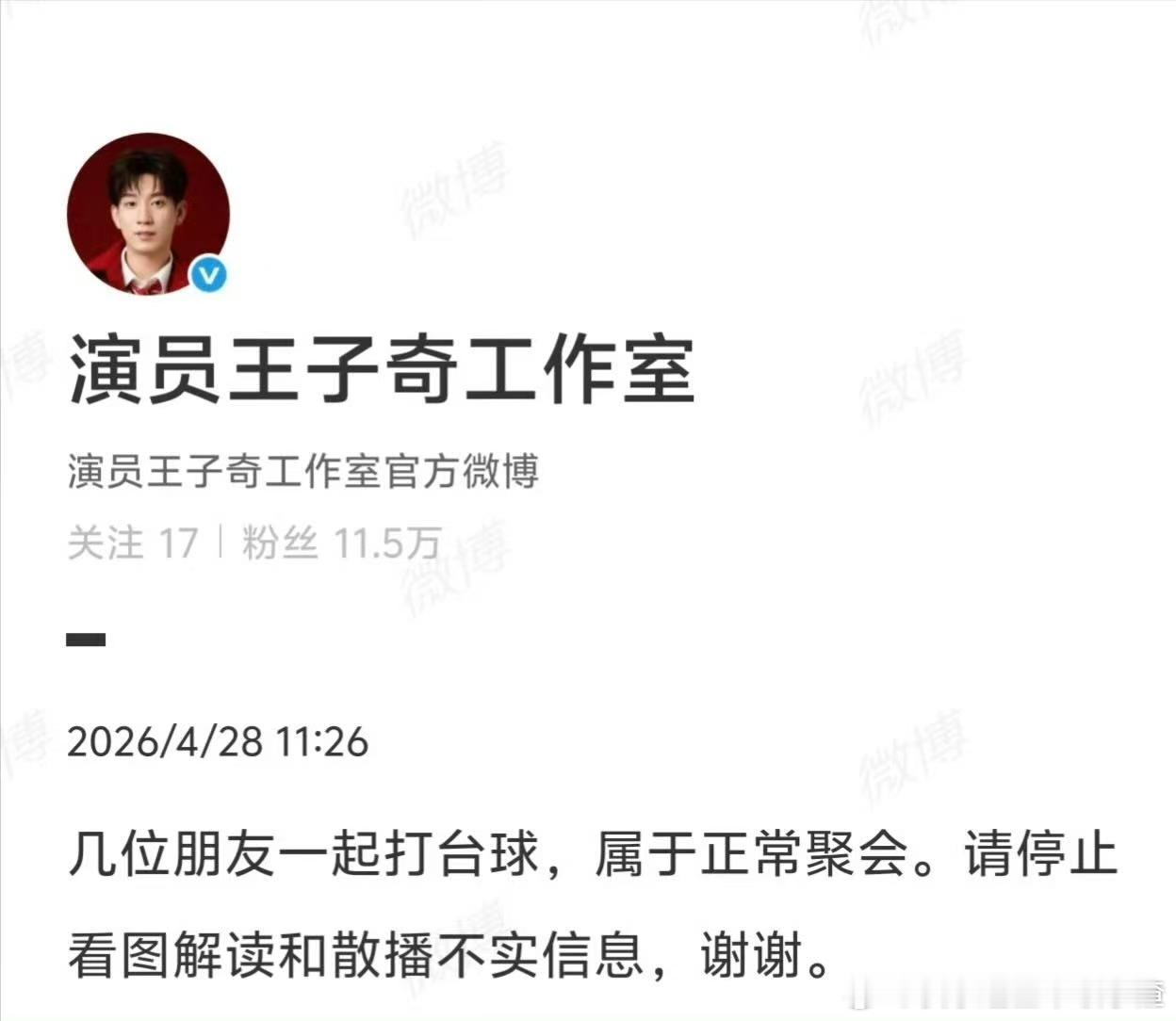 王子奇方否认恋情 王子奇被爆恋情瓜,王子奇工作室已辟谣:几位朋友一起打台球,属于正常聚会。请停止看图解读和散播不实信息,王子奇方称朋友打台球正常聚会