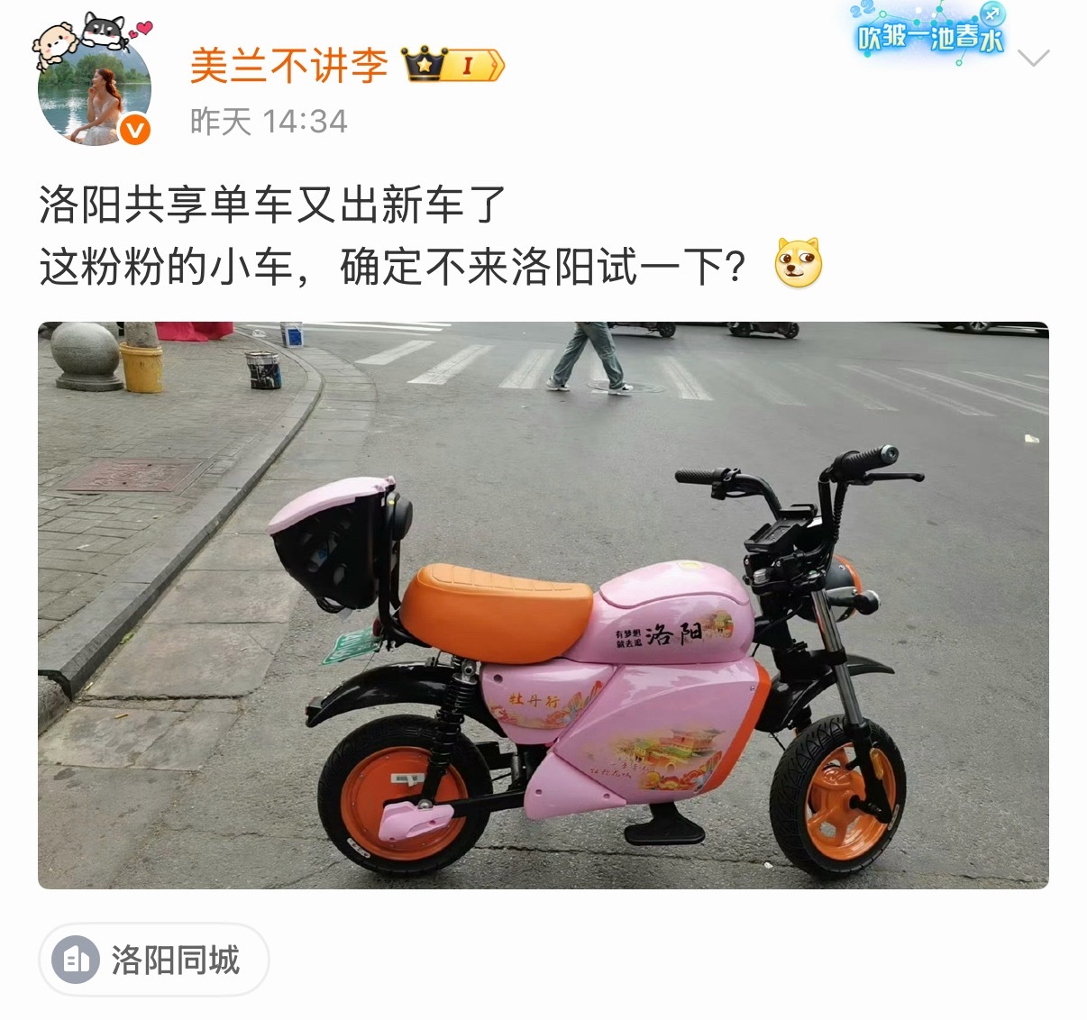 昨天看见小粉,今天看到小蓝洛阳的共享单车真的好高级啊