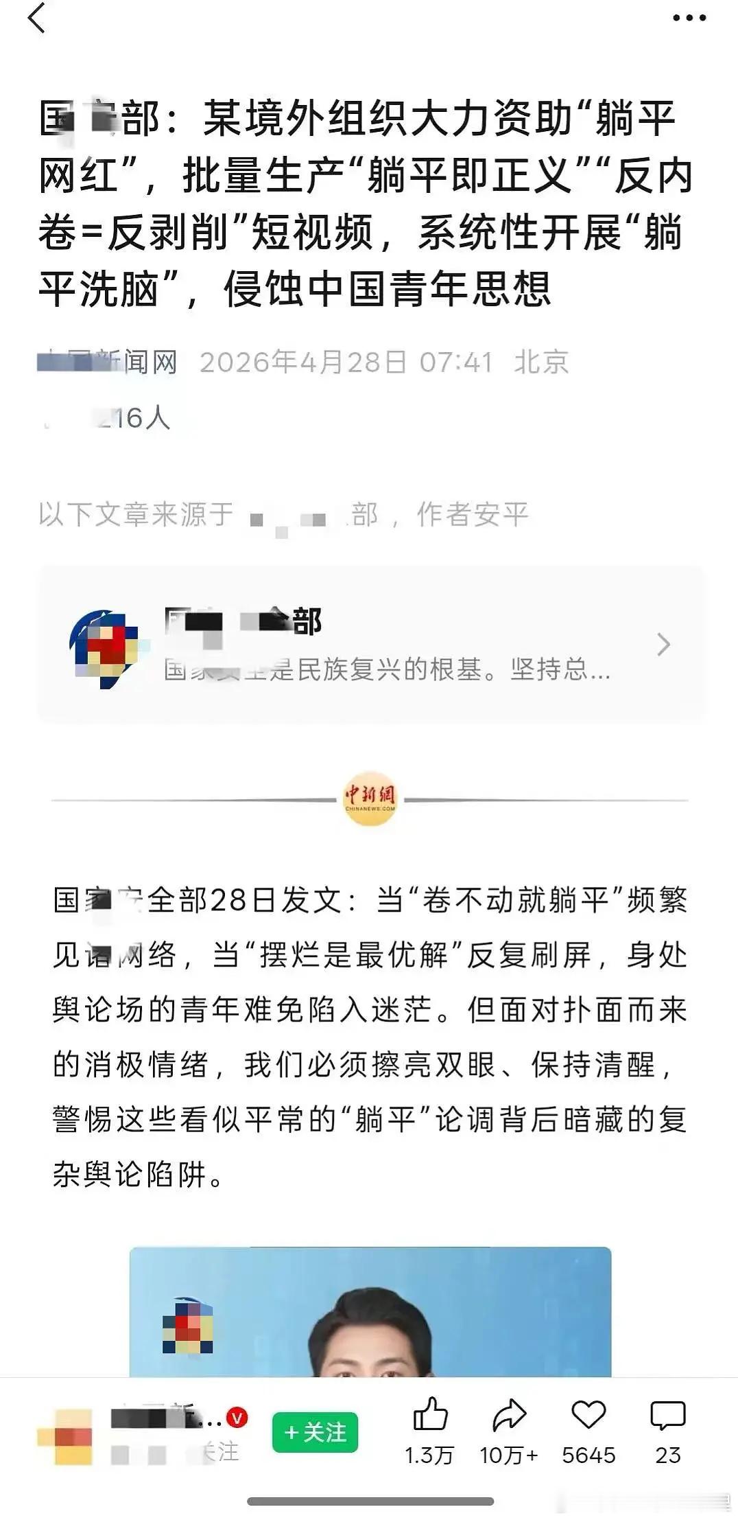 有一说一,你现在想躺平吗?境外组织大力资助网红煽动躺平