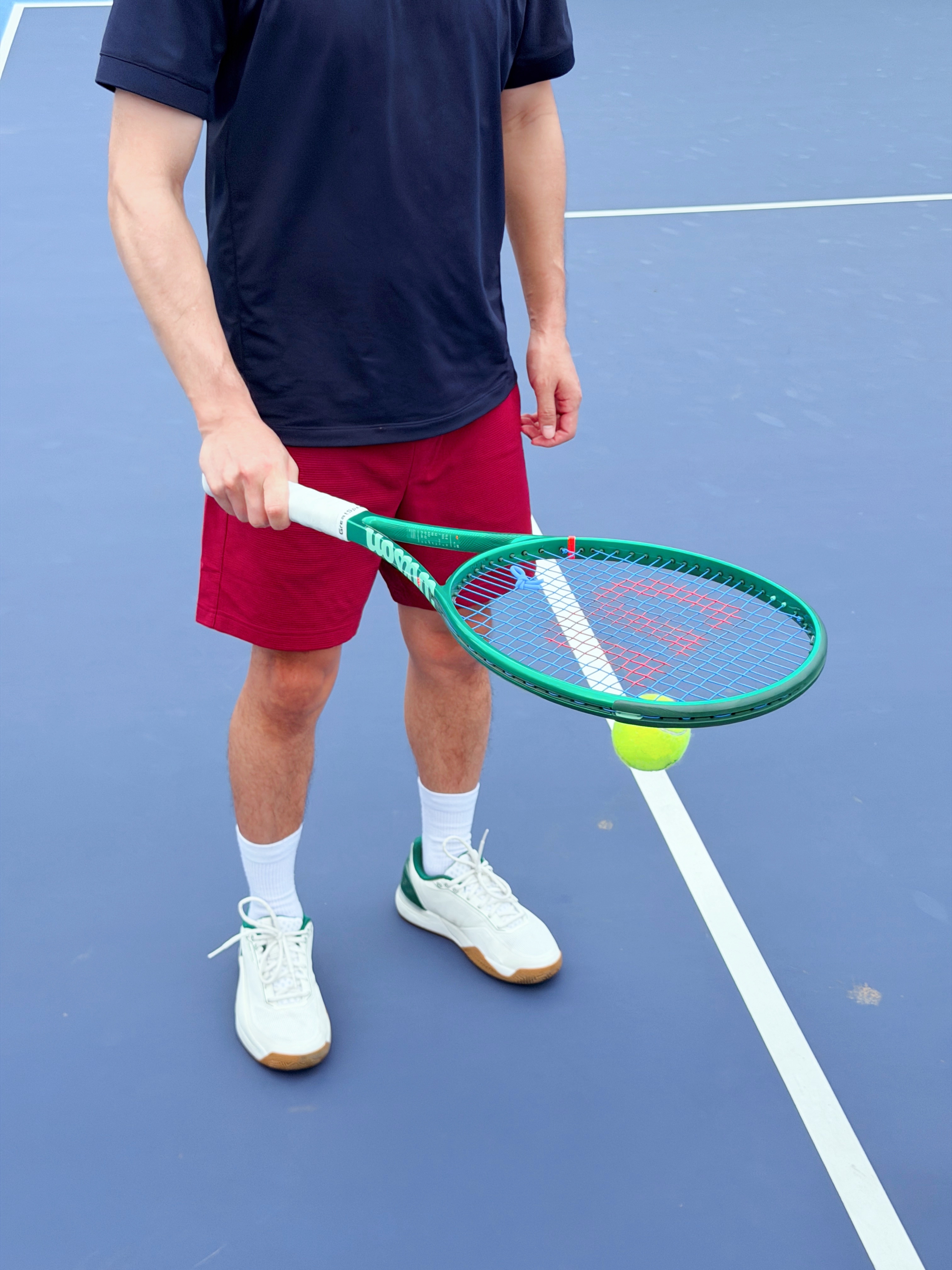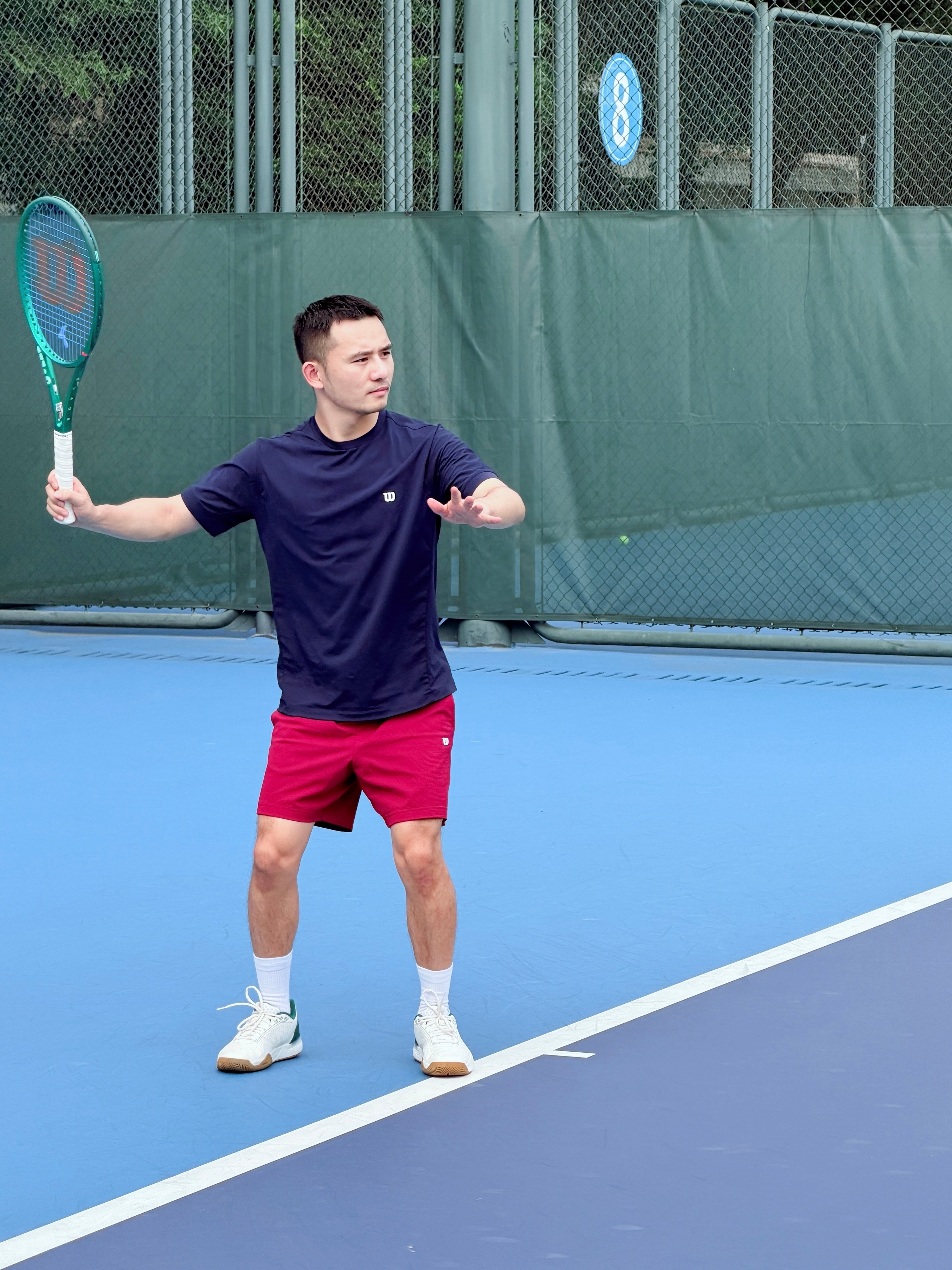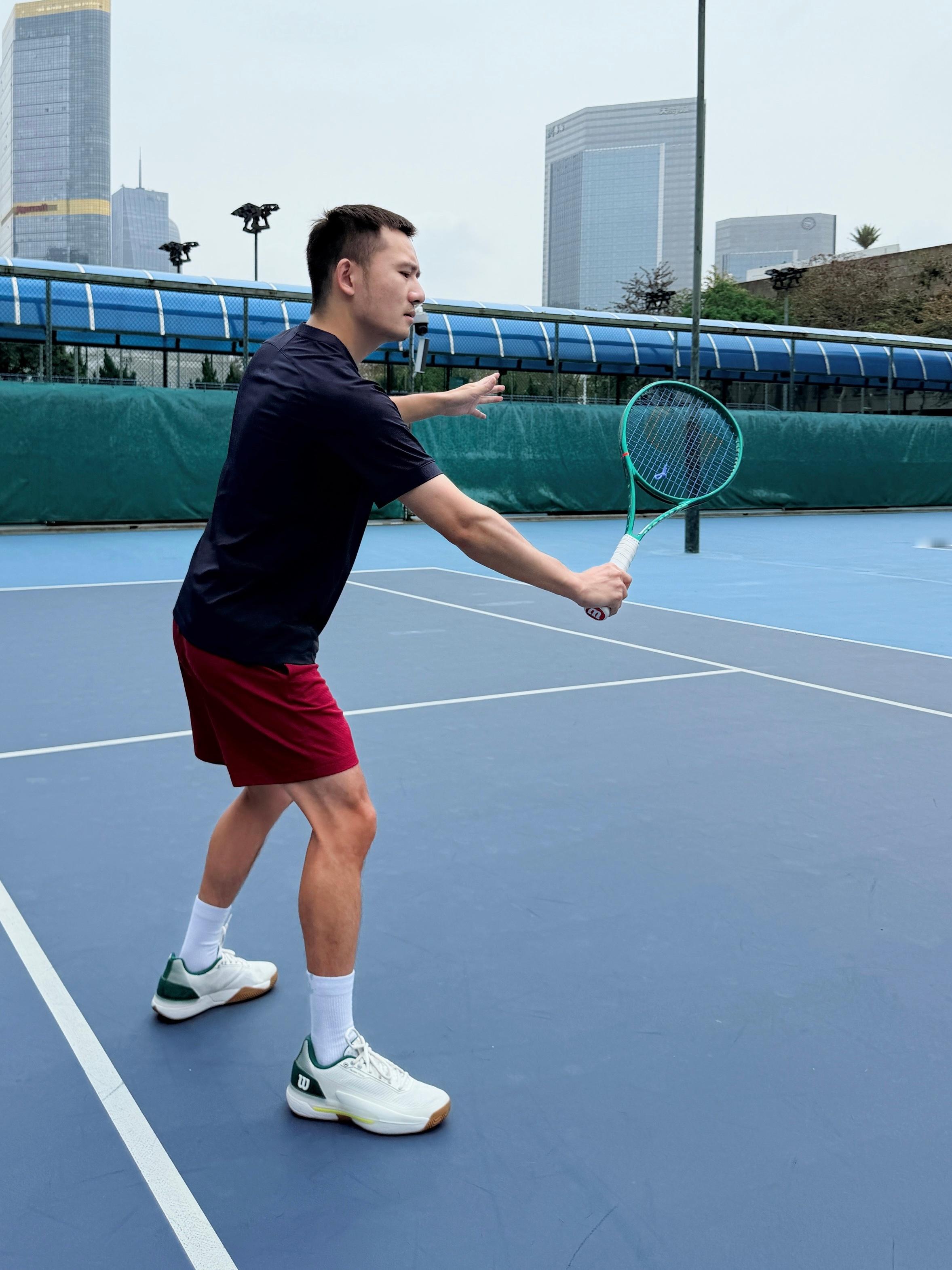 首先说说我发球的变化。第一次使用V10的那个夜晚,打了2盘单打比赛,居然没有发双误!这对我太重要了!V10头偏重,所以在同挥速下惯性更大,向上和向前摩擦球更稳,更容易制造旋转,这很好的解释了我发球在不丢质量的情况下变得更稳定的原因。