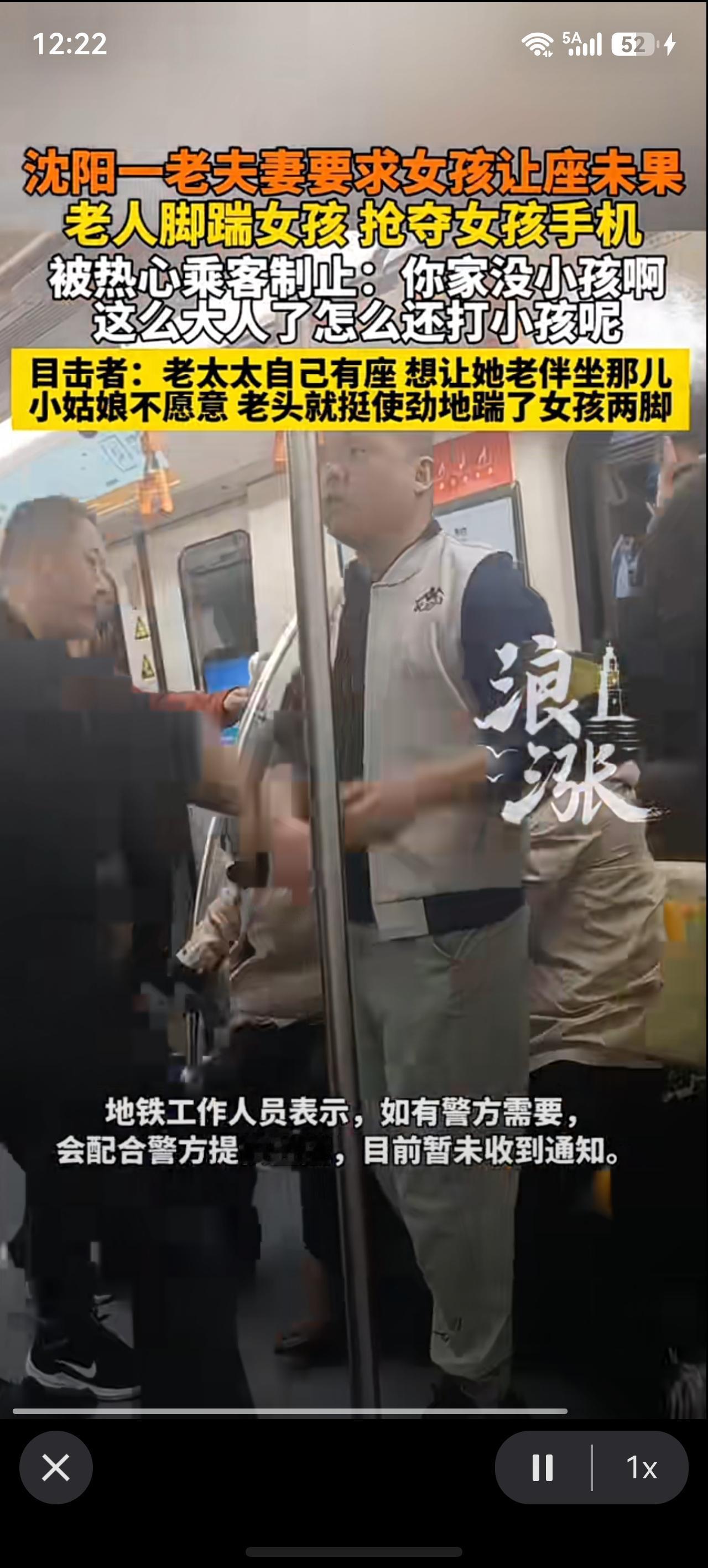 恕我直言,等这批年纪大的动不了了,整个社会的素质能提升一大截。 近日沈阳一老夫妻