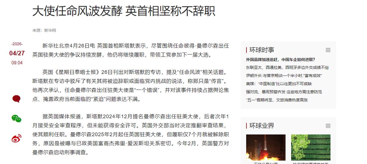 其实这事不只是用人错,还能看出英国政府的问题:安全审查跟闹着玩似的,这么重要的职位,没通过审查也能上岗;斯塔默要么是糊涂,要么是有私心,才会提名有黑历史的曼德尔森,不管哪种,都不配当首相。