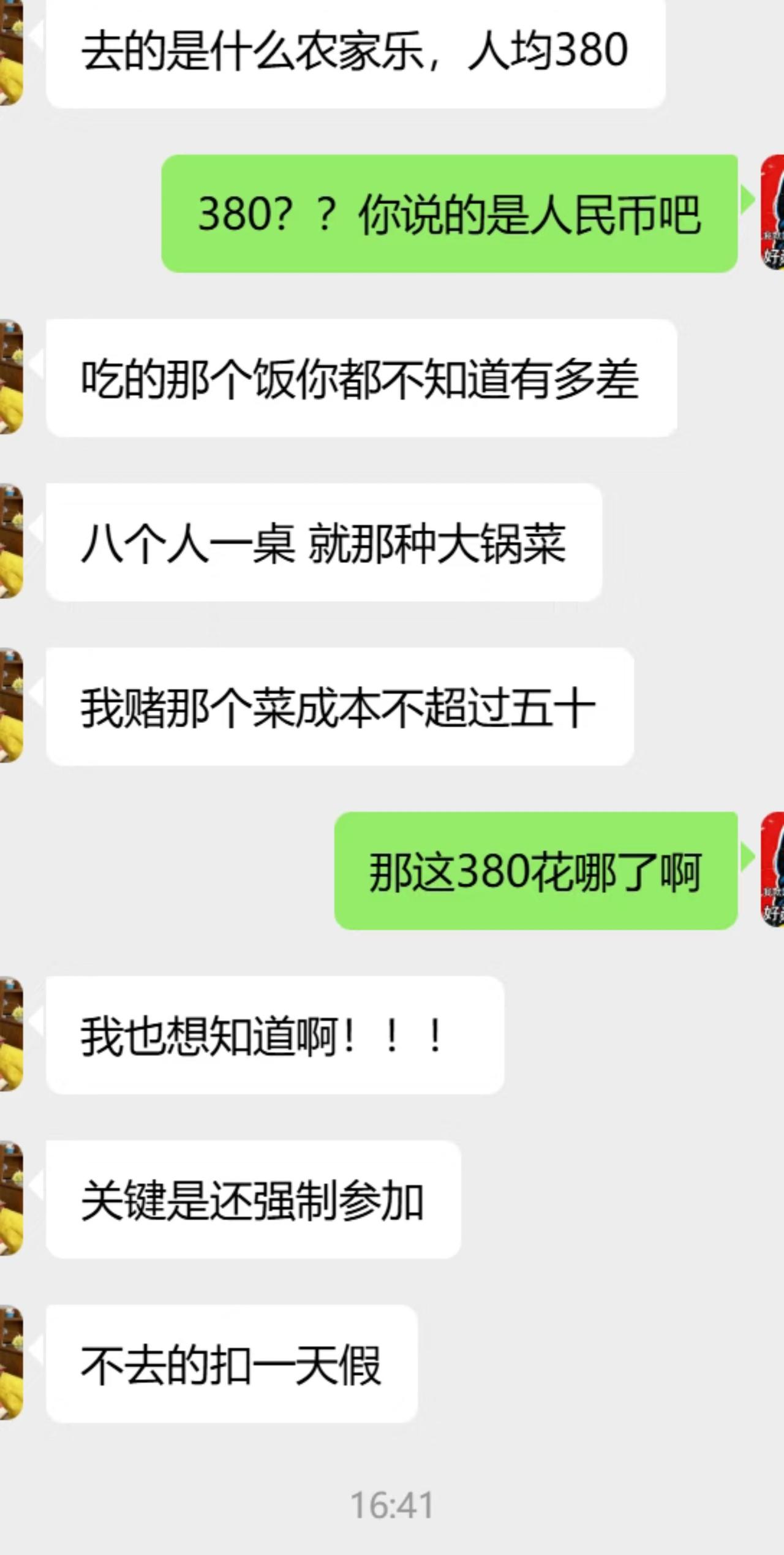 公司团建还要员工AA?简直太离谱了! 来自我朋友的神仙公司, 昨天跟我在微信吐槽