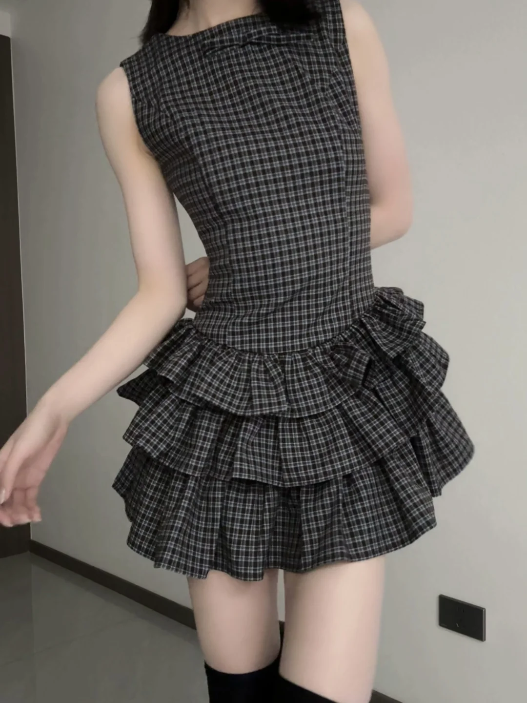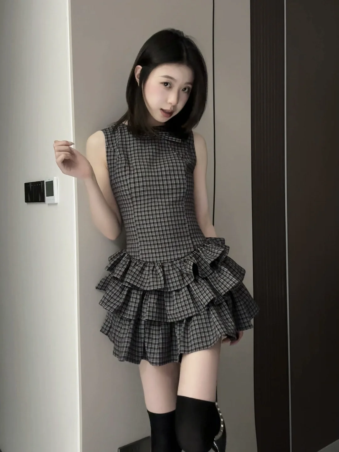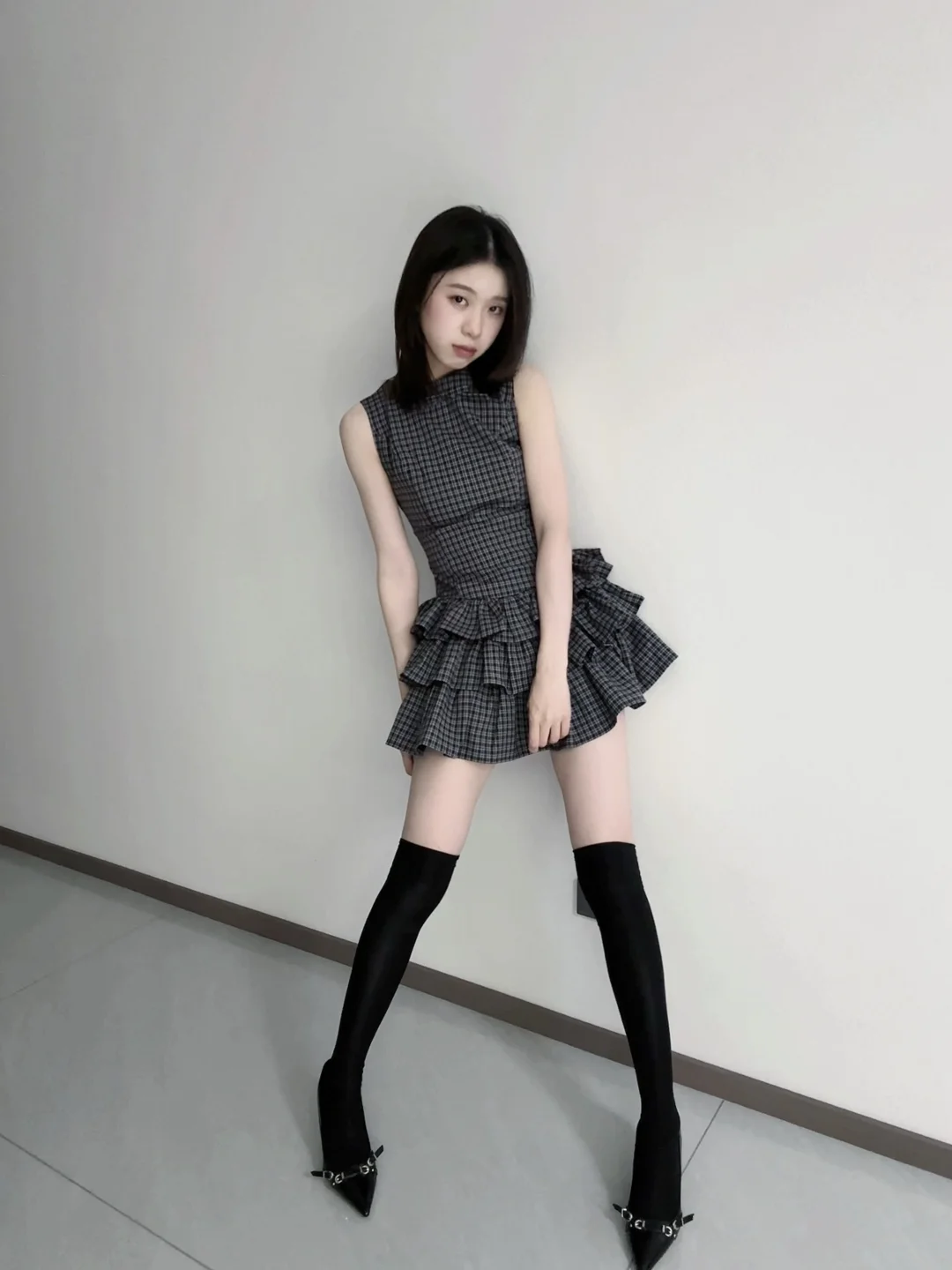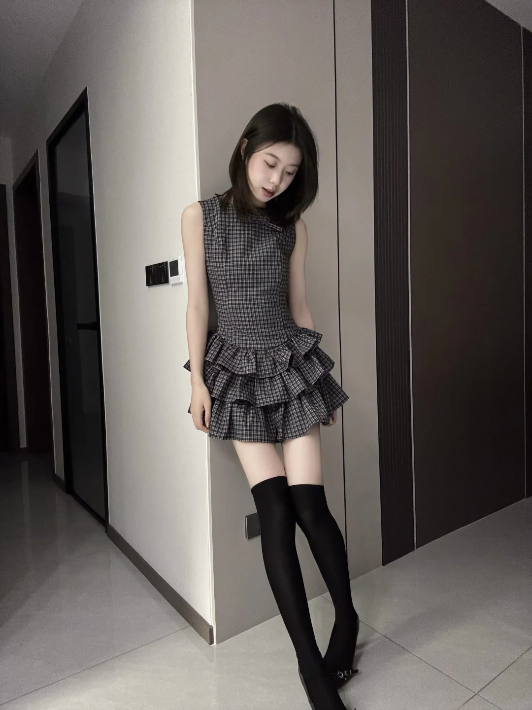 优雅黑白格纹连衣裙,复古又时尚,搭配高跟鞋,尽显女性魅力!