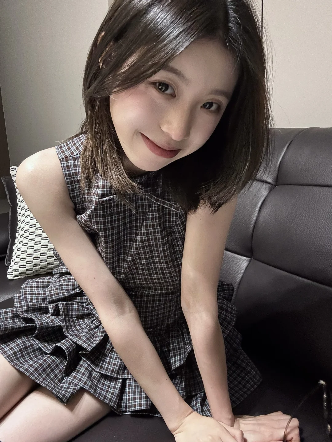 暖光漫过木桌,咖啡香在空气里酿成蜜。米白针织系着温柔,格纹裙晕开复古的诗。