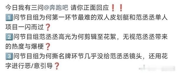 范丞丞粉丝对奔跑吧节目组有三问,然后排字了,发生了什么