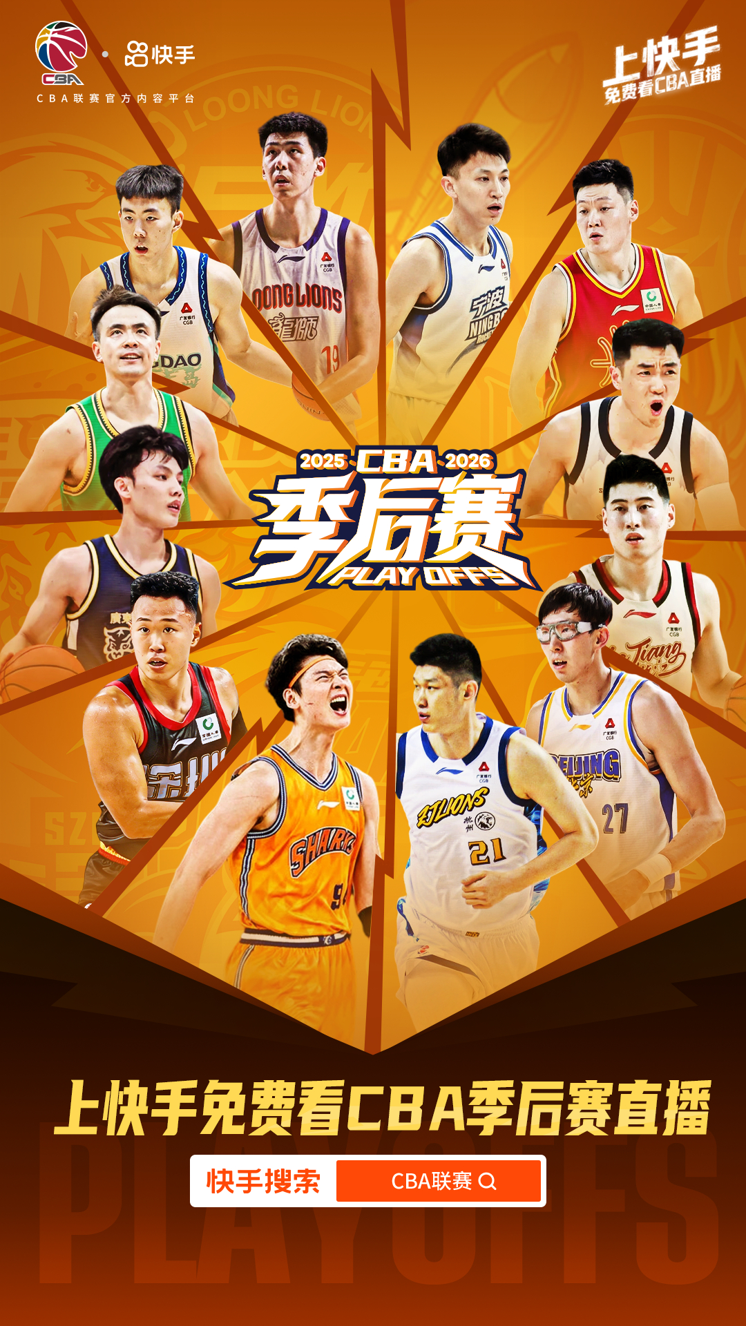 CBA季后赛今晚打响!快手这解说阵容也是太有节目了,我想看巩指导点评山东、杨导搭郭艾伦,另外李晨说球是啥画风啊