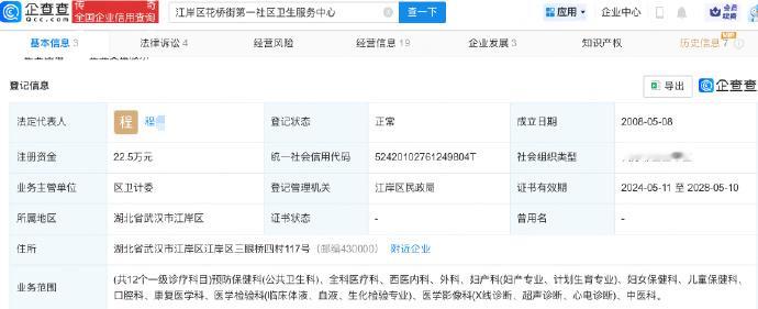 袭胸医生事发时已返聘工作两年【女子看病遭袭胸医院已成立18年】近日,湖北武汉,一名女患者称在社区医院诊室单独接受颈椎相关诊疗时,医生以“检查身体”为由要求其脱光衣物,自己遭“袭胸”猥亵。事发后,涉事医生已被警方行拘。女子看病被要求脱光衣物遭医生袭胸企查查APP显示,涉事医院江岸区花桥街第一社区卫生服务中心成立于2008年5月,注册资金22.5万元,业务范围含妇女保健科、儿童保健科、口腔科、康复医学科等。据相关媒体报道,知情人表示,袭胸医生陈某某今年66岁,属于退休返聘人员,事发时已在江岸区花桥街第一社区卫生服务中心工作两年。