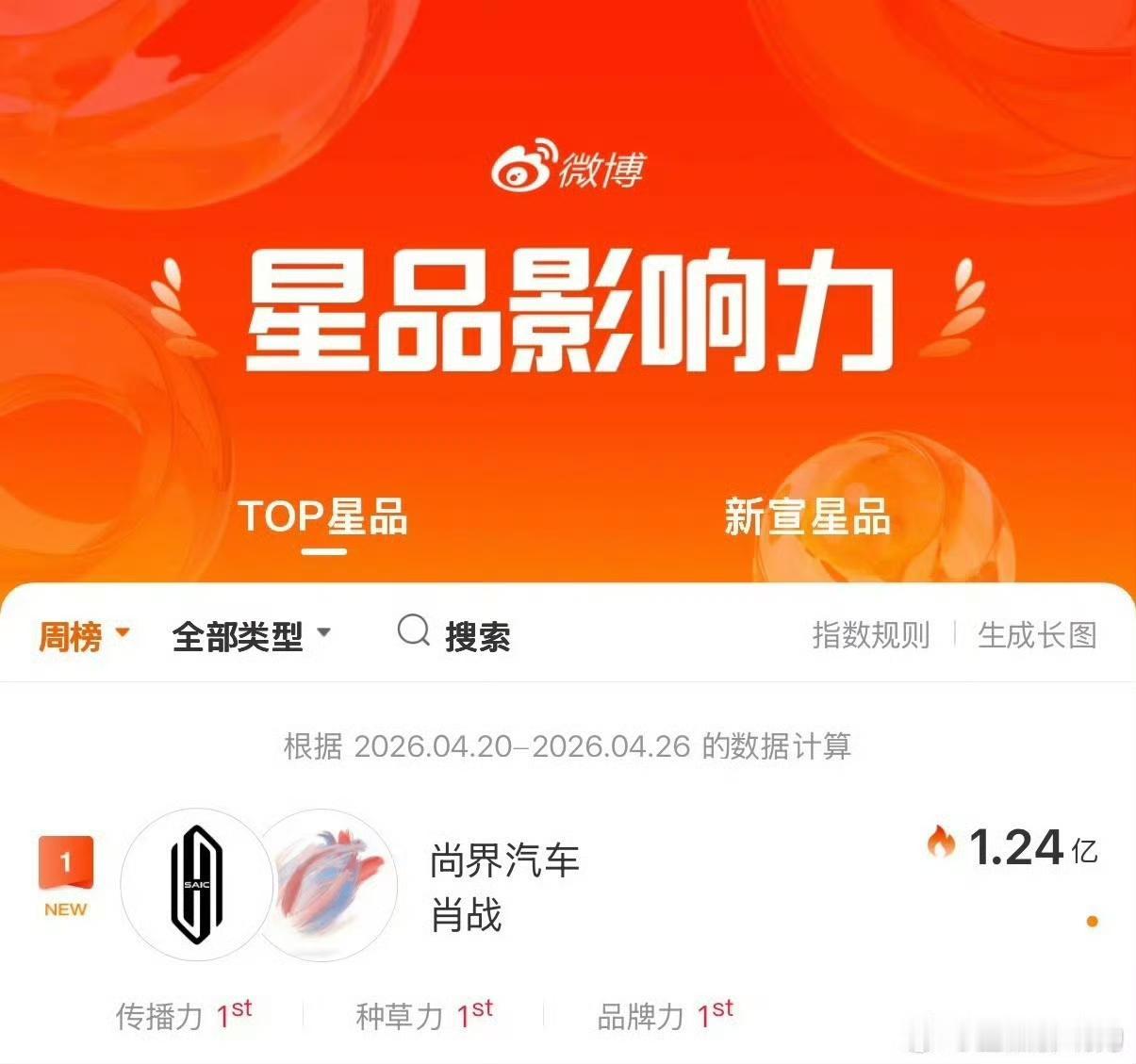 4月28号 尚界汽车 X 肖战 ,星品指数1.24亿,拿下本周第一 ! 敢想象