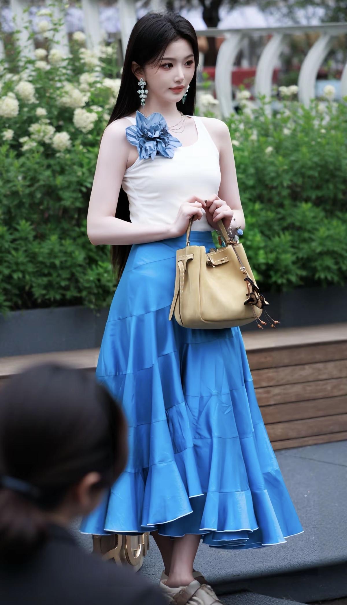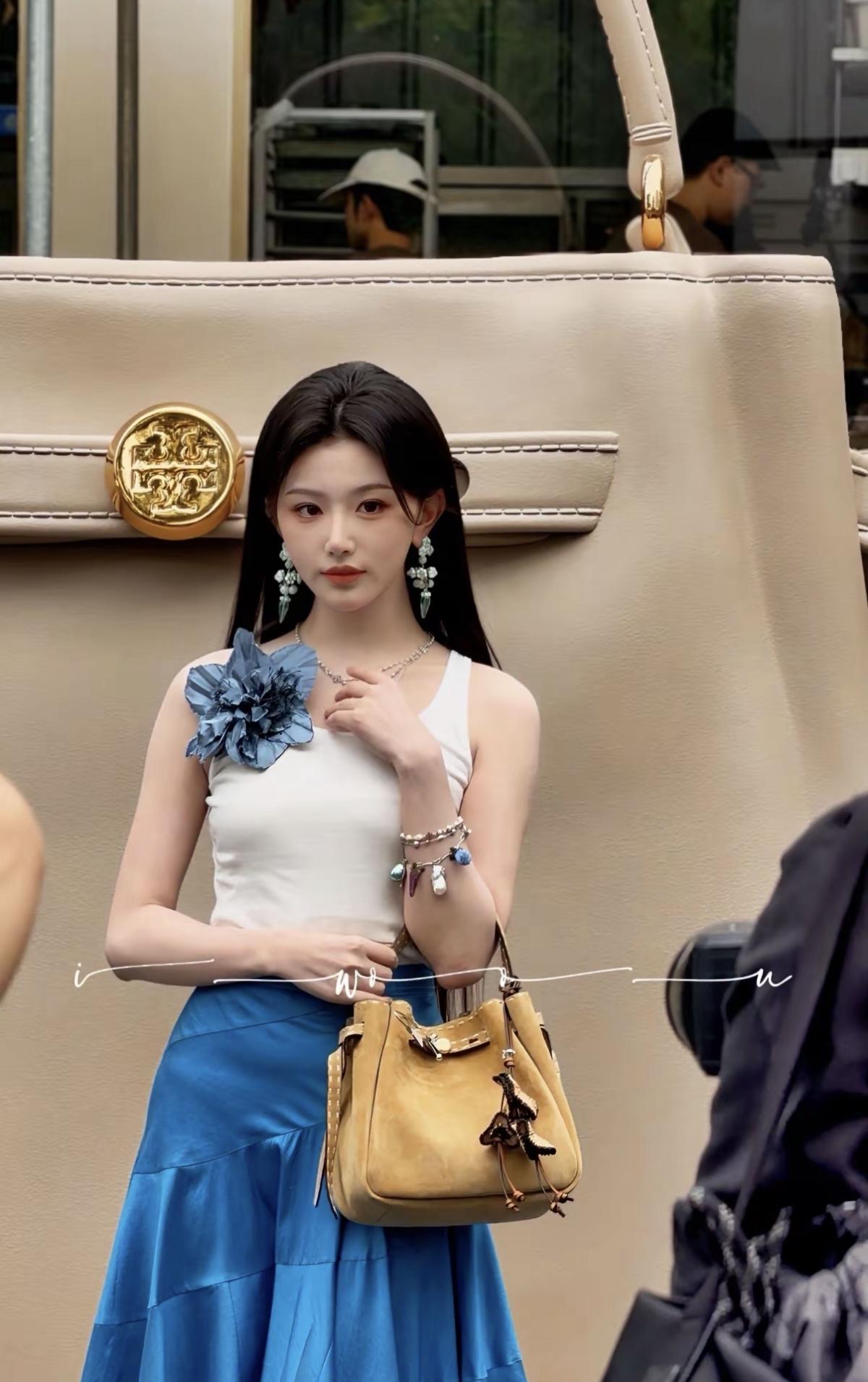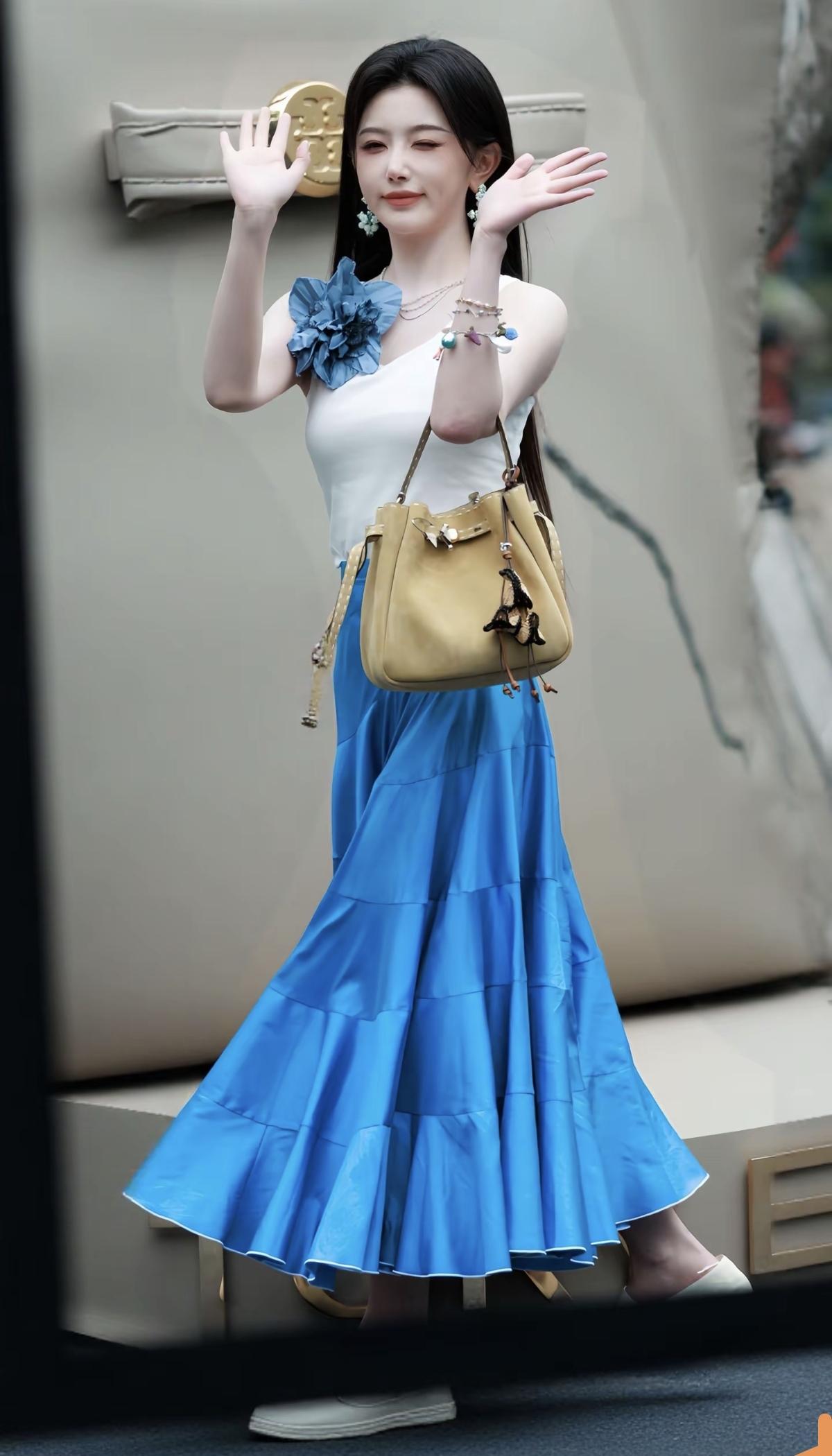 孔雪儿蓝白撞色的温柔千金,自带松弛贵气感[比心]孔雪儿从镜头里走出来的画报美人,