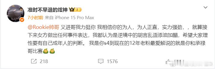 并未被小钰威胁,Rookie道歉前,炫狗先窜出来了,看起来是支持Rookie,其