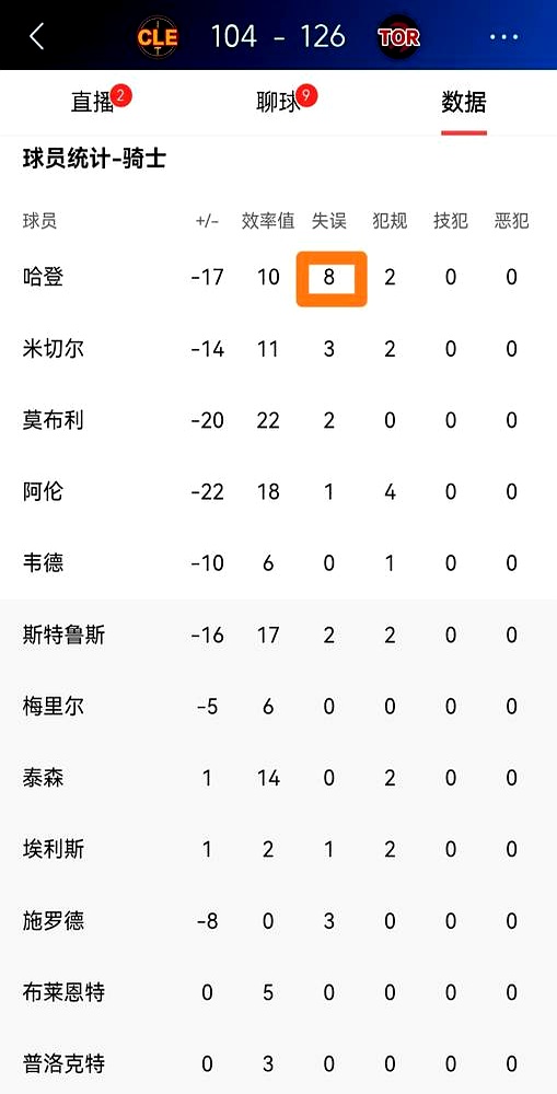 这球输得真窝囊。第四节直接崩盘,全队20次失误被猛龙换了23分!米切尔三分7中1,手感冰到极点。