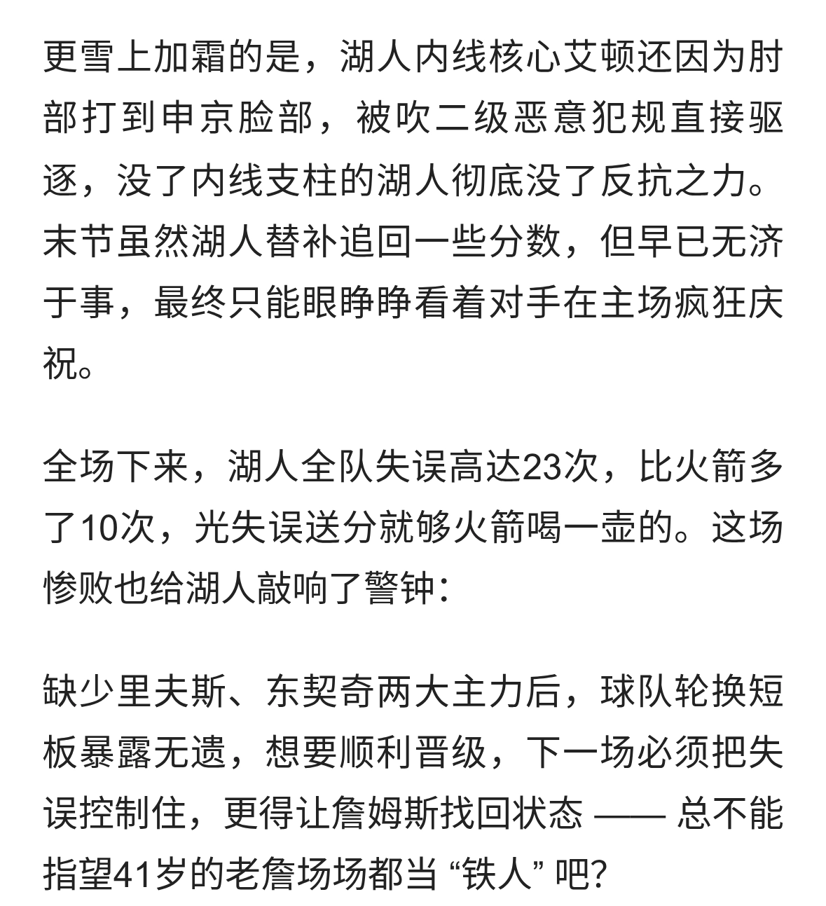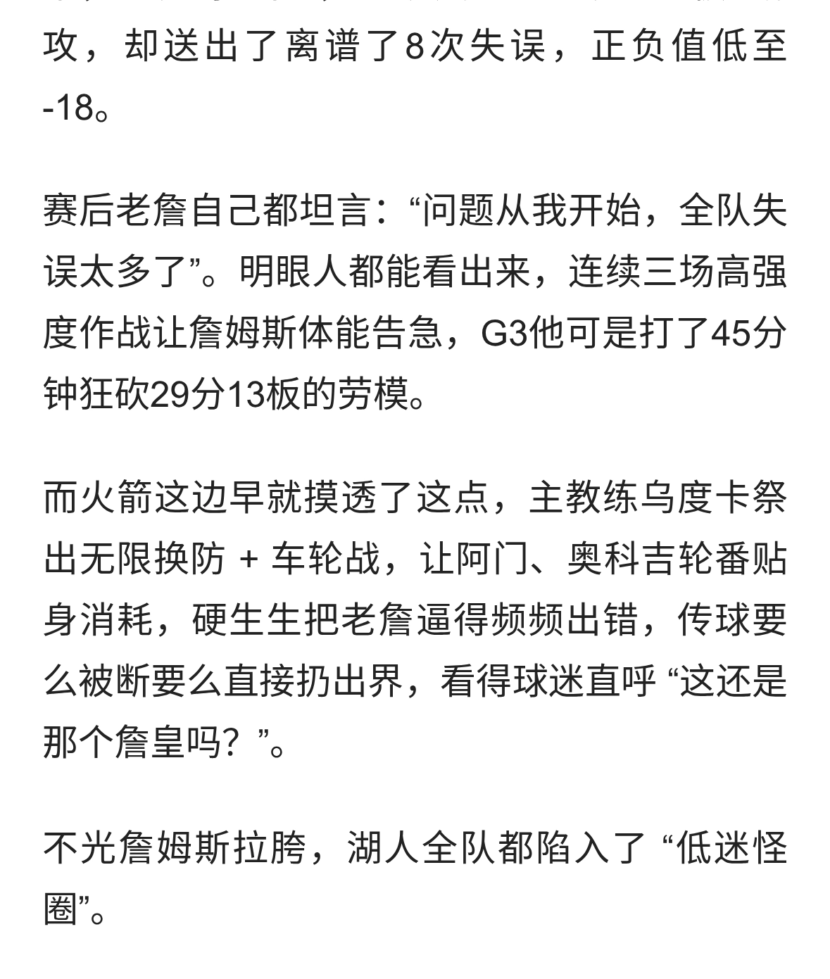 詹姆斯8失误创尴尬纪录!湖人96-115遭火箭吊打,前三节提前缴械
