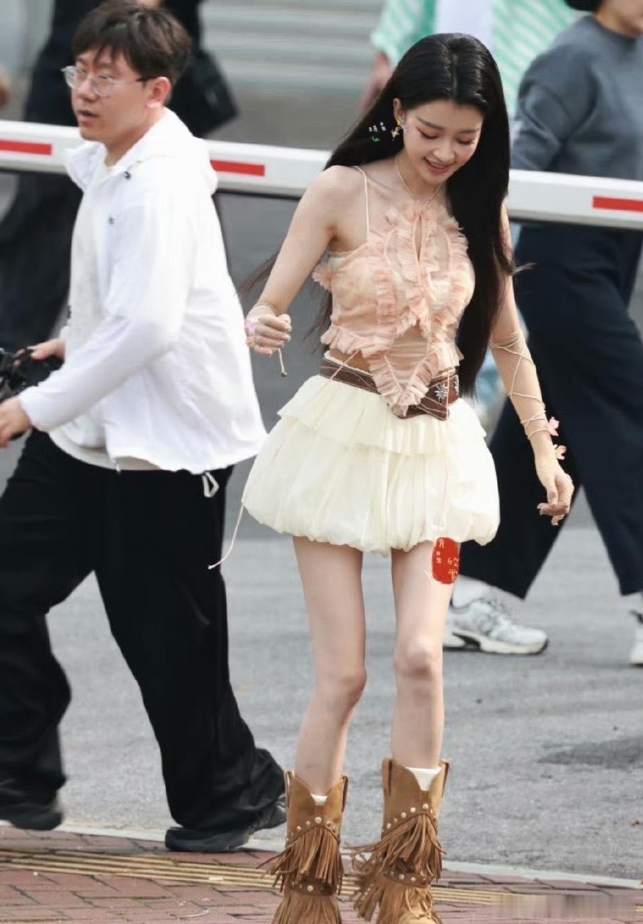 4月28日,迪丽热巴在南京参加迪奥活动怼脸拍曝光,怎么成这样了?五官变化挺大的,