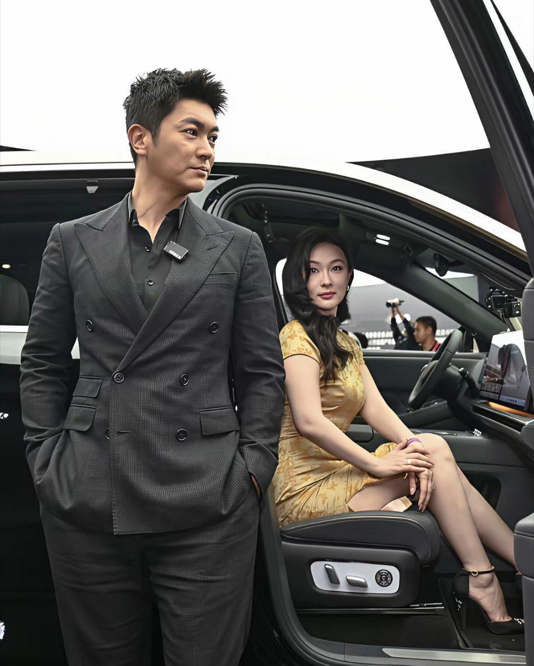 46岁霍思燕和老公杜江在北京一起外出遛狗,她穿着一身旗袍,留着一头妩媚的长卷发,