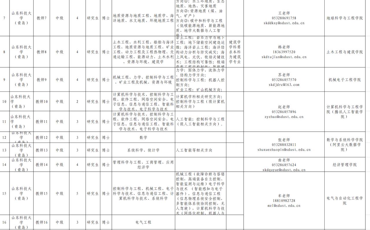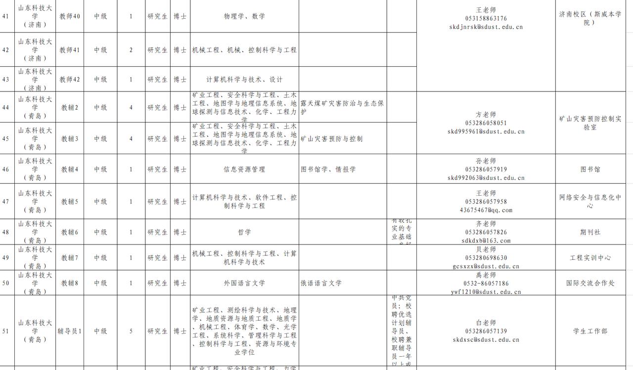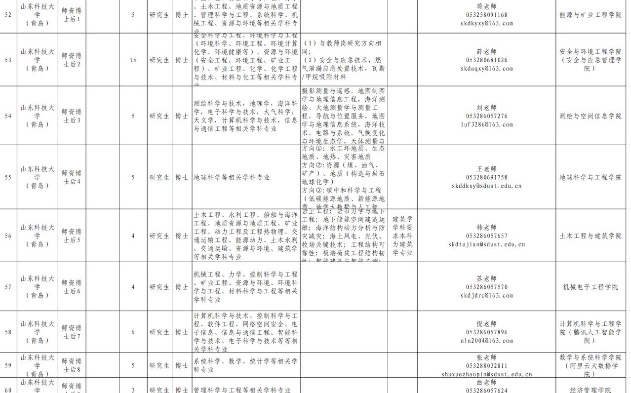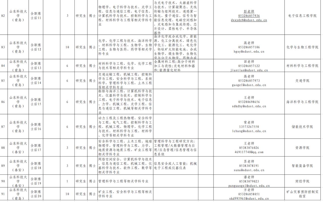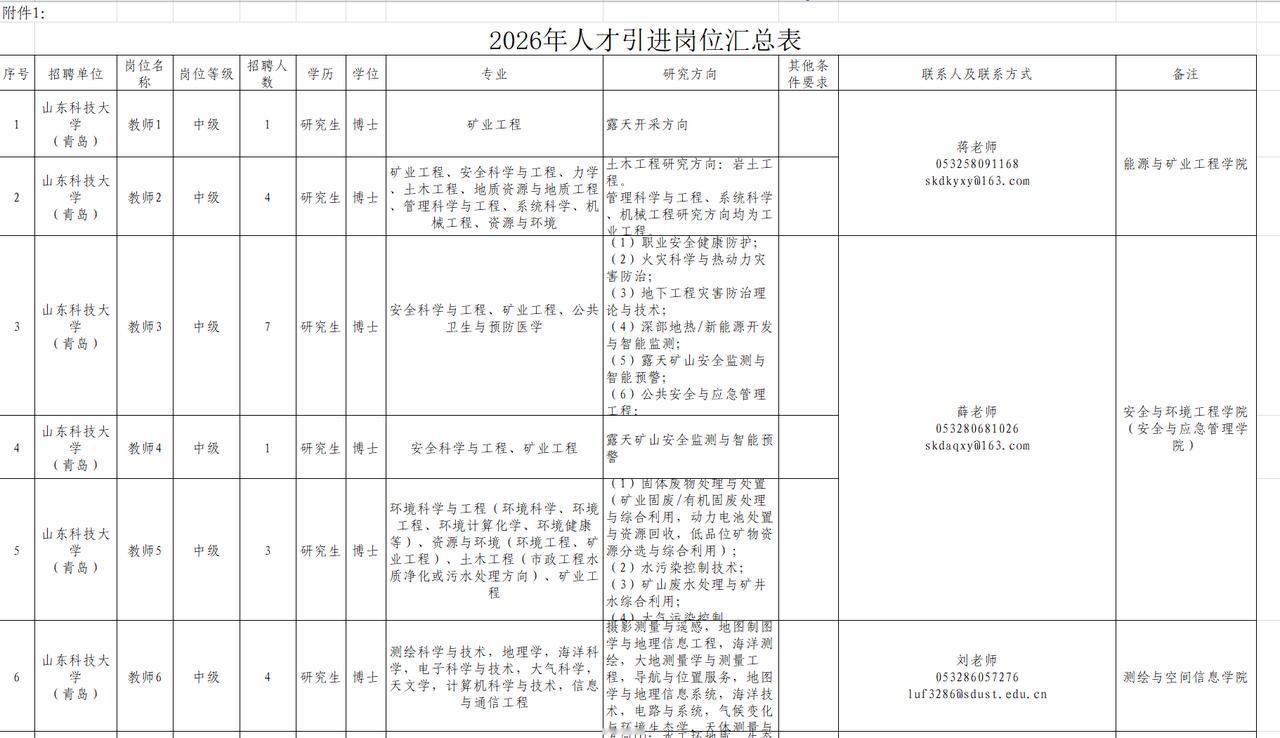 根据工作需要,拟面向海内外引进高层次人才、青年人才、师资博士后、全职博士后,具体岗位详见《山东科技大学2026年人才引进岗位汇总表》