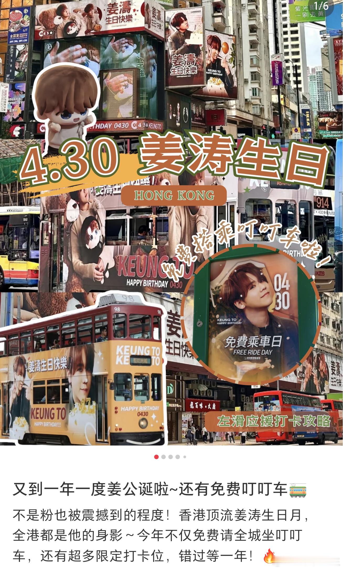 一年一度的香港顶流姜涛生日“姜公诞”要来了又请所有人免费坐“叮叮车”了,这个是真羡慕了今年红过罗湖,广州都有生日屏了