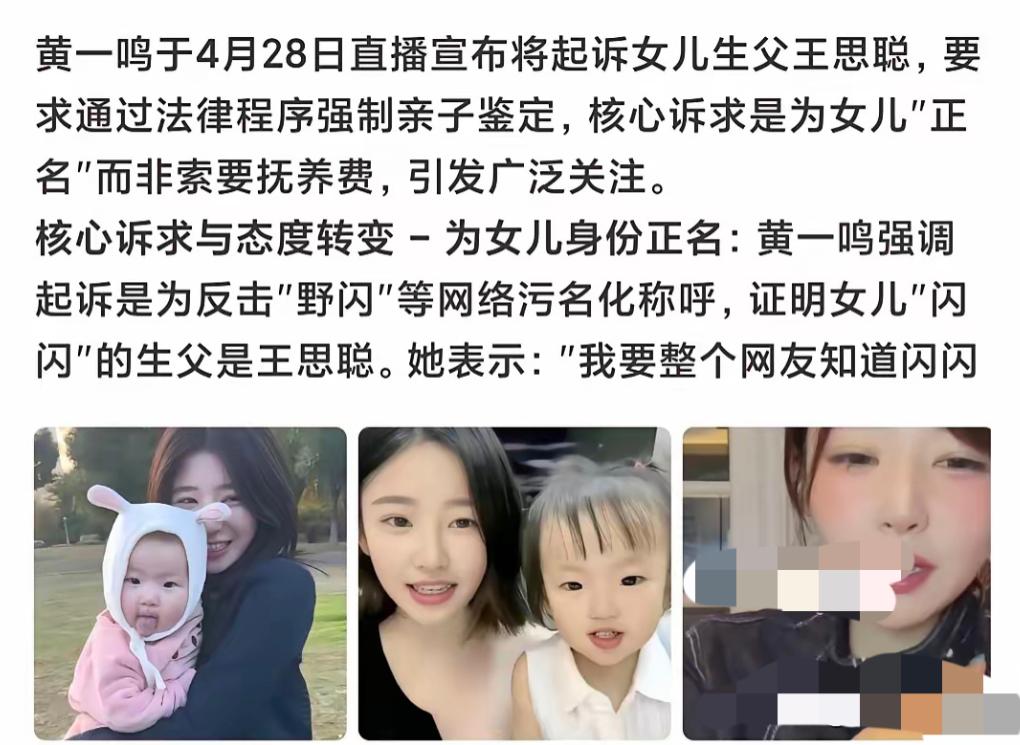 黄一鸣在直播里说得情真意切,反复强调起诉不是为了抚养费,自己能赚钱养女儿,只是想让三岁的闪闪摆脱 “野闪” 的污名,拥有堂堂正正的父亲身份。