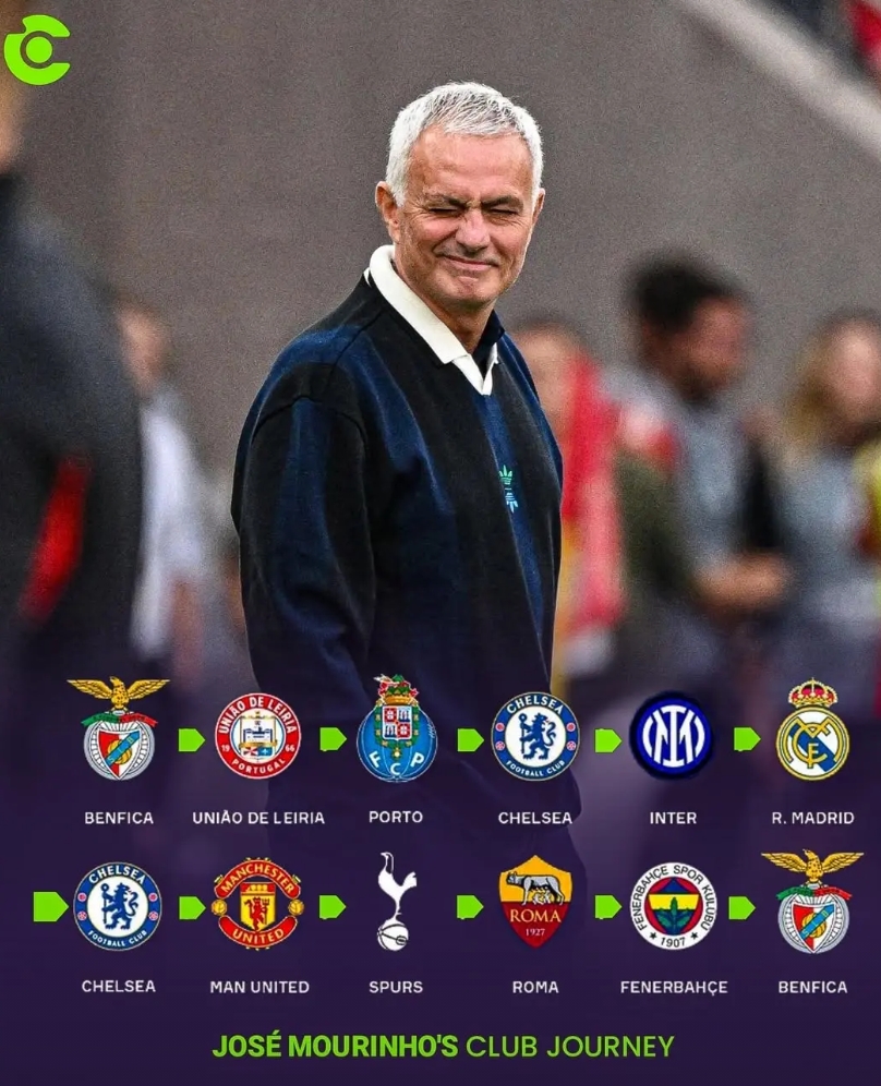 世界名帅、葡萄牙人穆里尼奥的执教履历非常丰富,已经达到了12支球队。