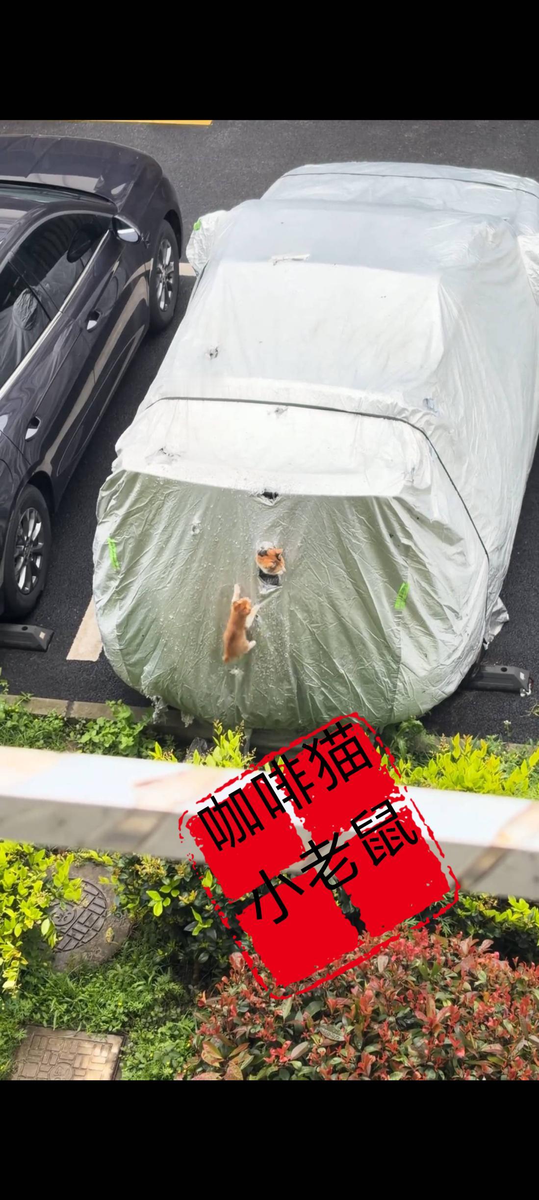 谁家邻居停放了几个月的车辆上,竟然从后备箱的汽车网罩中间破了一个大洞,当拍摄者仔细一看才发现,洞口里面竟然躲藏着几只非常活泼可爱的小流浪猫在车子里面生活了起来……