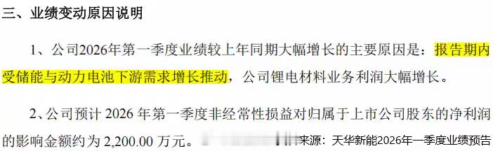 市占率第一,江苏锂电寡头,业绩大增1500%!天华新能,终于翻身了!2025年下半年以来,锂盐价格渐渐走出低谷,身处锂业的众多公司终于能“长舒一口气”。经历了连续三年的净利润下滑后,天华新能终于迎来春天。2026年4月24日,公司发布2026年一季报:一季度营收32亿元,同比增长89.62%;净利润9.69亿元,同比大增1471.98%。天华新能,到底是如何做到的?未来还能不能继续保持业绩增势呢?锂盐巨头市占率全球第一天华新能并不是一开始就扎根锂业,实际上是半路出家。最开始,公司叫“天华超净”,做防静电超净技术产品,后面也曾跨界医疗器械。直到2018年,宁德时代上市,公司与其合资成立天宜锂业,这才正式进入了“锂盐主赛道”。后来,天华新能一步步把业务重心迁移到锂电材料上,时至今日,锂电材料产品营收占比88.32%,公司显然已化身“锂电材料”供应商。选对了赛道,业务发展也就进入了舒适区。2025年,按收入计算,天华新能是全球第三大电池级氢氧化锂制造商,市占率13.4%;更是以22.2%的市占率雄踞全国第一。在整个电池级锂化合物行业,公司也很领先,是全球和我国第四大电池级锂化合物制造商。说到底,天华新能一季度业绩增长,与锂盐价格息息相关。2025年上半年,由于供需错配,我国锂盐市场均价持续下滑并触及低谷。6月底,全国电池级碳酸锂均价甚至一度降到每吨不足6万元,电池级氢氧化锂价格也下滑严重,整个锂电材料行业都遭遇打击。好在,2025年下半年-2026年4月,锂盐价格显著回升,且涨幅不小。截至4月24日,我国电池级氢氧化锂报价达到15.5万元/吨,电池级碳酸锂报价达到17.4万元/吨。天华新能的业绩,正与这“节节增长”的锂盐均价同步。分季度来看,从2025年第三季度起,公司净利润就以113.22%、512.79%和1471.98%的同比增速飙升。这种“周期性”业绩回升,这让我们想到了2022年。彼时恰逢锂业上升周期,天华新能的营收、净利润分别达到170亿元、66亿元的历史最好水平,至今仍未被自己再次超越。公司一季度净利润增长迅猛,很大一部分原因是由于去年一季度的业绩基数太低。常言道:打铁还需自身硬。为加速业绩增长,天华新能早已做了三手准备。上游扩充锂源下游猛攻技术、产能天华新能的三手准备,分别针对“矿产资源”、“锂盐技术”和“产能”三大方面。第一,开拓锂矿资源。回归到产业链源头,锂盐供不应求之下,谁有矿,谁吃香。曾经,我国在全球锂资源中的占比并不高,在2025年的行业报告中,我国在全球已探明锂资源量中仅占比6.67%,可开采锂资源储量占比12.43%。然而,在2025年9月,我国新发现一条2800公里的“亚洲锂腰带”,横跨四川、青海、西藏、新疆,锂资源量一跃升至全球第二,这也为锂盐企业提升资源自给率带来新可能。2025年,天华新能取得了江西省金子峰锂矿某矿区的采矿许可证,目前拥有该锂矿5.47亿吨的锂矿石资源量。未来公司计划在2027年实现生产。不仅如此,公司还成功竞拍获得四川省道孚县容须卡南锂矿的勘查探矿权,目前正在推进;在海外,公司以包销、控股、参股等多种形式参与巴西、刚果(金)等国的锂矿。据统计,在2023年,天华新能的锂矿石自给率还几乎为0,到2025年已经增至15.5%。第二,发展新能源材料技术。近几年,固态电池等新兴电池技术为锂盐打开新的技术缺口,天华新能也在加速追赶。在正极材料方面,天华新能子公司江苏宜锂已经开发出中镍高电压三元正极、高镍高电压三元正极、O3相钴酸锂等,多款产品可量产。另外,子公司埃米特重点研发富锂锰基和尖晶石镍锰酸锂这两类高电压锰基正极材料,目前多家客户送样合格,并已实现产品销售。在电解质方面,硫化锂材料是硫化物固态电解质的核心原料。天华新能也已经具备研发到规模化生产的实力,产品纯度高达99.9%,目前已经送样至硫化物固态电解质头部企业。第三,扩大产量,搭上储能快车。在一季度业绩预告中,天华新能明确表示业绩受“储能与动力电池需求增长”推动。动力电池出货主要看新能源汽车渗透率和出货量,2025年我国新能源汽车渗透率达到45.2%,未来有望继续提高。实际上,储能电池也很有看点。据统计,2026年一季度,我国锂电行业披露的电芯类投扩产项目总投资超1800亿元,很大一部分都指向储能。2025年,我国储能电池销量499.6GWh,同比增长101.3%,较上一年高77个百分点。据不完全统计,全年我国储能企业海外订单新增366GWh,同比增速高达144%。面对这场下游扩产潮,天华新能火力全开。目前,公司拥有四川宜宾、四川眉山、江西宜春三大生产基地,产能分别为7.5万吨、6万吨和3万吨。2026年2月,公司位于甘眉工业园的锂电材料二期项目正式开工,项目总投资30亿元,投产后每年将新添6万吨电池级氢氧化锂(可柔性转化为5.3万吨电池级碳酸锂)和6万吨电池级碳酸锂产能。产能有序提高,公司将为加速出货备好“燃料”。最后,总结一下。一季度业绩增长,虽然受周期驱动,但不能掩盖天华新能的优秀。手握氢氧化锂全球第三的市占率,同时向锂矿上游与前沿技术拓展实力,天华新能已经走出了自己的一条路。