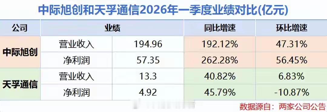 光模块第一股,利润猛增260%!苏州,是个好地方!提到苏州,大家想到的往往是粉墙黛瓦的江南水乡。也正是这块风水宝地,孕育出一大批名气响亮、实力雄厚的企业。光器件玩家天孚通信、PCB老将东山精密,还有通信巨头亨通光电,纷纷扎根于此。可以说,苏州集结了我国AI算力产业链上的核心力量。不过,同处苏州,命运也不尽相同。苏州旭创作为中际旭创的全资核心子公司,带领后者业绩一路高歌猛进。2026年一季度,中际旭创营收高达194.96亿元,同比猛增192%;净利润57.35亿元,同比大涨 262%,单季利润已接近2025年全年的一半。反观同处苏州的天孚通信,表现就平淡不少。2026年一季报数据出炉,公司营收13.3亿元,同比仅增长41%;净利润4.92亿元,同比上涨46%,但对比2025年第四季度的5.52亿元,环比却下滑了11%。同城同源、同处光通信产业链,中际旭创和天孚通信为何走向分化?天孚通信真的掉队,跟不上AI时代的节奏了吗?业绩分化的根源,在于两家企业在光通信产业链中截然不同的定位。先看中际旭创。它主营的是400G、800G和1.6T这些完整的光模块,可以理解成AI数据中心的“信息高速公路”。AI算力要爆发,数据要快速传输,就离不开光模块。这种业务,也就决定了中际旭创在整个光通信产业链中处于中游位置,直接对接谷歌、微软这些北美云厂商和AI巨头,所以也就能第一时间承接AI算力资本开支的红利。从2023年AI算力开始升温,公司光模块的产量和销量就一年一个台阶,到2025年销量更是直接冲到了2109万只,相当于两年翻了三倍。到了2026年一季度,中际旭创更是表现亮眼,800G和1.6T光模块持续上量,高端产品占比也在提升,直接把毛利率推到了46.06%。除此之外,公司还在悄悄向上游“抢生意”。它现在生产的800G和1.6T光模块里,硅光方案的占比越来越高。这种技术能把原本需要从外面买的光引擎等关键零部件,直接集成到芯片上,等于把利润又多留了一份在自己手里。聊完中际旭创,再看天孚通信。该公司是做光引擎、隔离器等光器件的,在产业链中所处的位置比中际旭创更靠上游,不直接面对终端客户。这种上游配套的模式,就导致天孚通信的业绩增长依靠下游厂商的订单传导,这里面天然就有1-2个季度的时间差。而且,产品本身的价值天花板也不一样。天孚通信的光引擎是光模块的核心部件,技术壁垒确实高,但再厉害,它也只是一个零部件,终究比不上完整的光模块。这也就能解释,为何2026年一季度中际旭创营收同比翻倍增长,天孚通信同比增速仅有41%,环比增速更是仅6.83%,业绩爆发力相对弱一些。不过,营收在增长,天孚通信2026年一季度净利润又为何环比回落?从核心盈利能力来看,公司2026年一季度的毛利率达56.6%,同比增长3.6个百分点,这说明其产品竞争力没有问题,实力依旧在线。天孚通信净利润环比回落,更多的是被费用端的支出侵蚀了。从净利率中可以看到,该指标已从2025年第四季度的44.34%降至2026年第一季度的37.01%,环比下降了7.33个百分点。这些多出的费用支出,主要就是两个方向:其一,研发投入持续加码。AI技术迭代速度不断加快,行业竞争日趋激烈,想要不被淘汰,就得提前布局下一代技术。天孚通信就一直重视研发,2026年一季度研发费用达8731万元,环比增长31%。这种高额的研发投入看似短期拖累利润,实则是为未来蓄力。目前,公司已完成1.6T光引擎规模量产和CPO配套光器件的研发,为后续抢占高端算力市场筑牢基础。同时,它还布局了硅光集成等下一代技术路线,不断筑牢技术壁垒。其二,财务费用大幅增长。如果说研发投入是主动布局未来,那么财务费用的激增则是短期被动压力。受汇率波动影响,2026年一季度天孚通信汇兑损失增加,财务费用也猛增至2379万元,环比增幅高达433%,成为吞噬净利润的另一重要因素。对此公司也及时出手,4月7日发布公告称要开展外汇套期保值业务,通过远期结售汇、外汇掉期等工具管理汇率风险。看到这,有人可能会问:未来天孚通信的业绩能否修复呢?要想有业绩,得先生产出产品,而要生产出足够多的产品,原材料是关键。不过,受上游产能释放节奏、良率爬坡等因素影响,200G EML光芯片等核心物料普遍存在缺货问题。天孚通信在4月22日的业绩说明会上也表示,其1.6T光引擎处于量产状态,目前因为个别物料缺料尚未达到预期产量,公司在积极协调供应商,努力争取更多交付。它是这么说的,也是这么做的。2026年一季度,天孚通信预付账款达9663万元,同比增长1101%,主要就是提前锁定核心物料与生产设备。若物料紧缺问题逐步缓解,后续季度交付量就有望稳步提升。写在最后。一条赛道,不同的站位,命运天差地别。中际旭创卡位中游核心,直接享受AI红利;天孚通信扎根上游核心器件,深耕技术研发,走的是长期稳健路线。所以,短暂的业绩增速差距也只是阶段性行业传导差异,并不能武断的说天孚通信已掉队,或许我们可以再多给它一些时间。