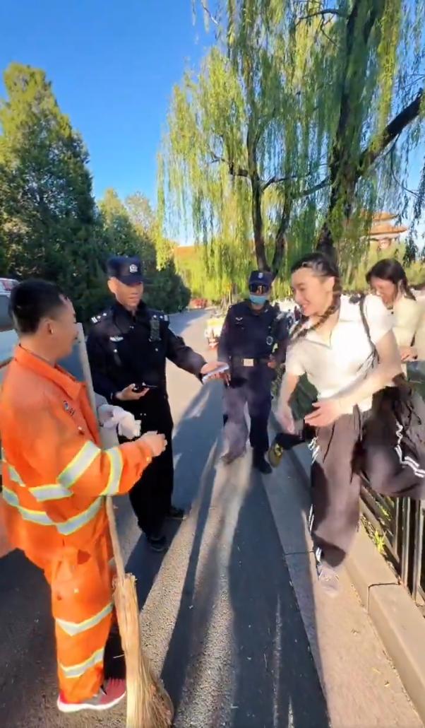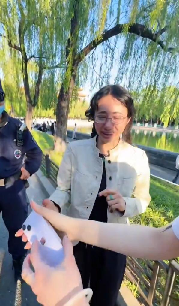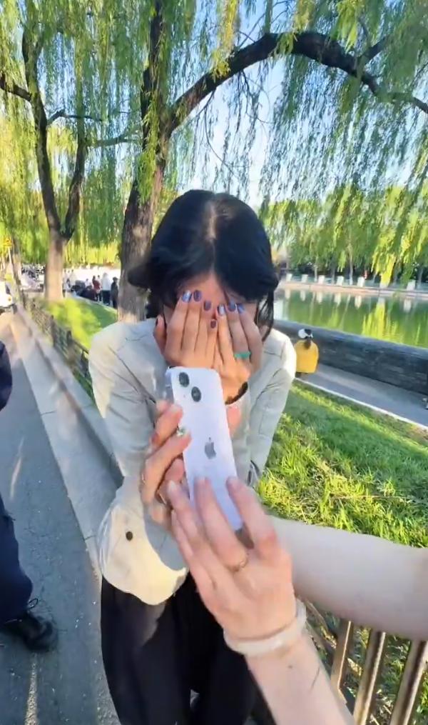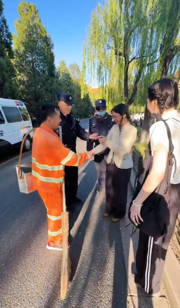 4月28日傍晚,中国北京市,来故宫游玩的美国洛杉矶两位女孩游兴甚浓,不停地打卡留念,不慎将手机丢失。故宫环境卫生工作人员王师傅在护城河岸边打扫卫生时发现草丛中遗失的手机,立即交给巡逻的民警,贴心民警让王师傅亲自交给失主,美国女孩重获手机后喜极而泣。
