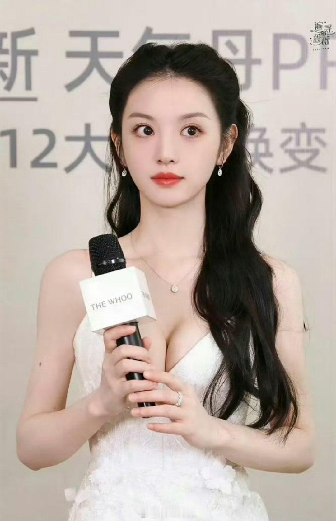 田曦薇今日份出席活动的活动图来了,穿着一身深V长白裙,尽显自己的身材啊,肤白貌美