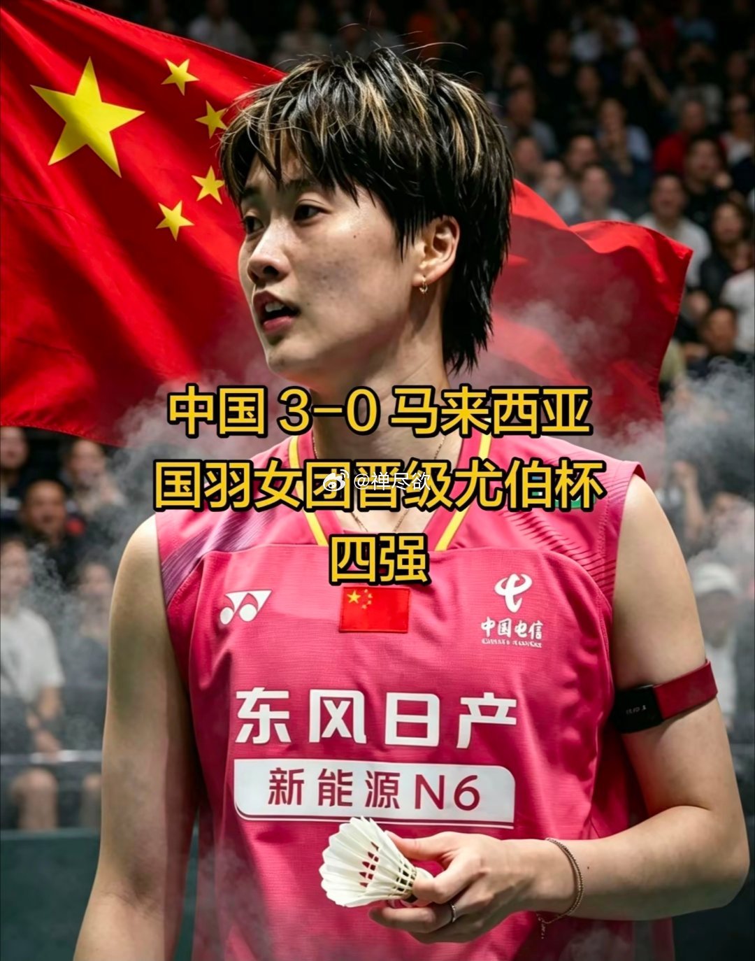 国羽晋级尤杯四强 尤伯杯1/4决赛|中国女团3-0零封马来西亚王祉怡、刘圣书/谭宁、陈雨菲依次拿下胜利国羽顺利晋级尤伯杯四强,延续强队风采全力以赴,静待半决赛,为国羽姑娘们点赞国羽2026年尤伯杯