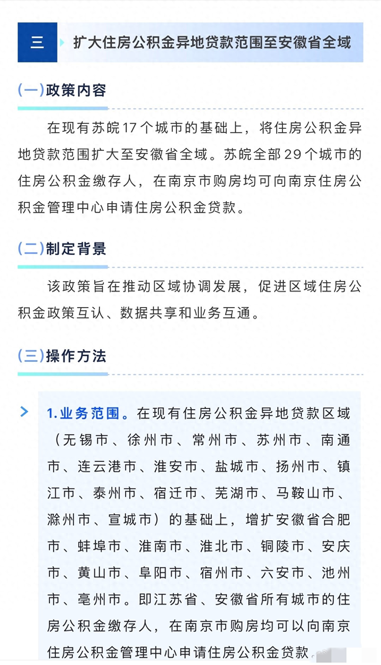4月16日,南京公积金管理中心甩出重磅新政:异地贷款范围从苏皖17城,直接扩大到安徽全省 。