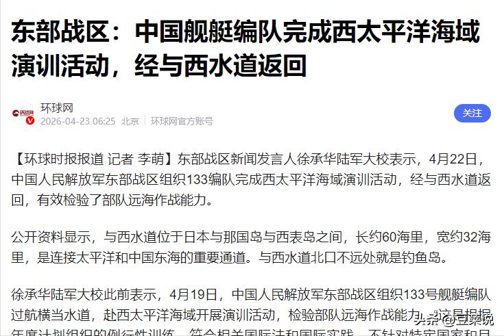 信息来源:东部战区:中国舰艇编队完成西太平洋海域演训活动,经与西水道返回