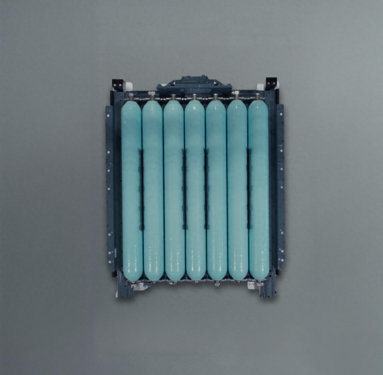 这套新系统的核心在于重新设计氢气储存槽的配置与结构。 宝马采用由7个碳纤维强化复合材料制成的高压氢气罐,并将其整合于坚固的金属框架中,形成一体式结构。 通过多个储存腔室并联连接,再由中央主阀门统一控制,使整体体积不仅更小,也大幅提升空间利用率。 相较传统分布式设计,这种整合方式更有助于车内空间维持与车体结构配置。