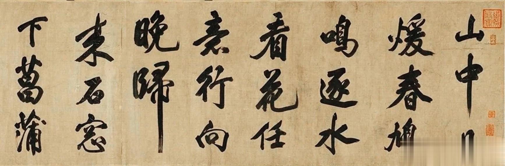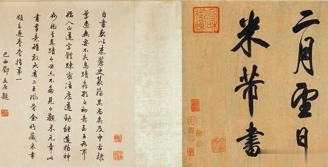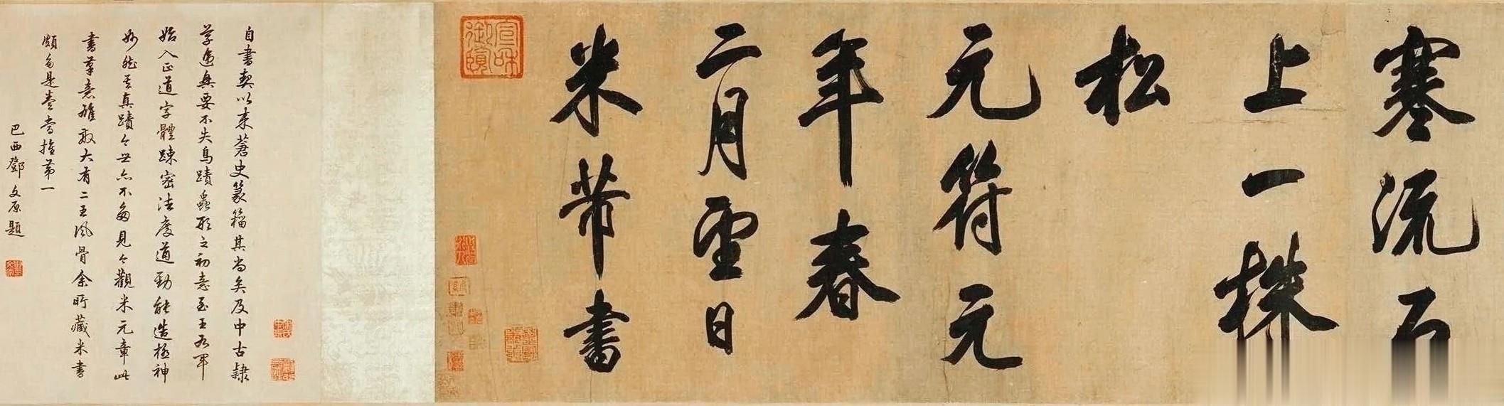 元符元年(1098年),晚年米芾挥毫写下唐张籍、卢仝两首山水诗。28×325cm长卷,字径超10厘米,是米芾存世大字行书的巅峰神品。