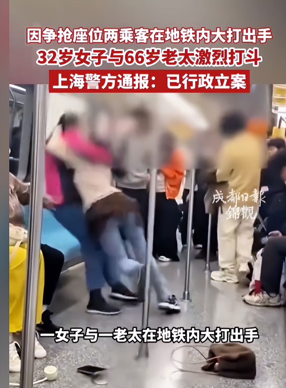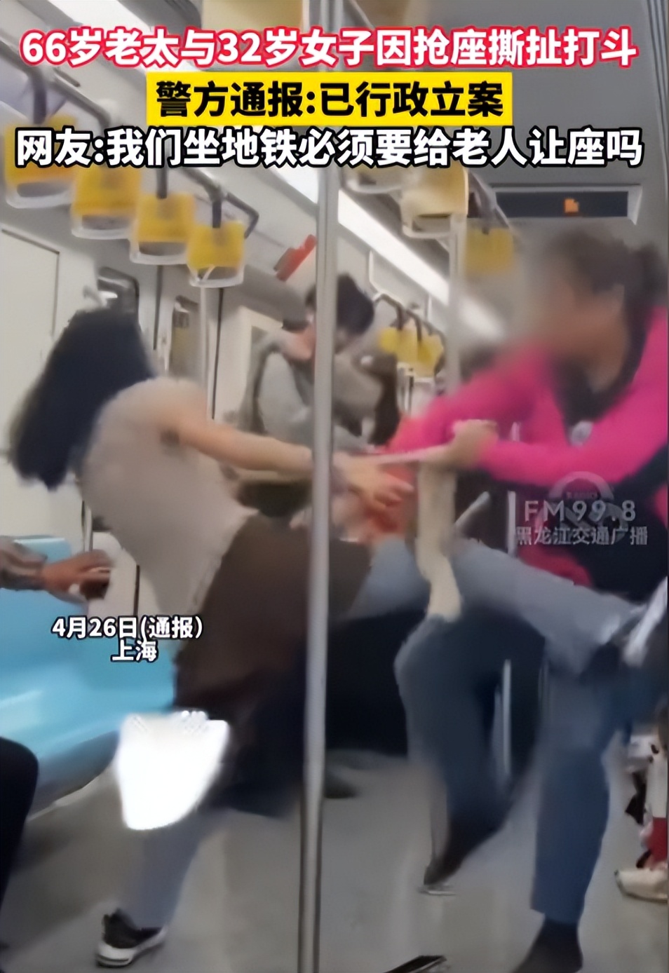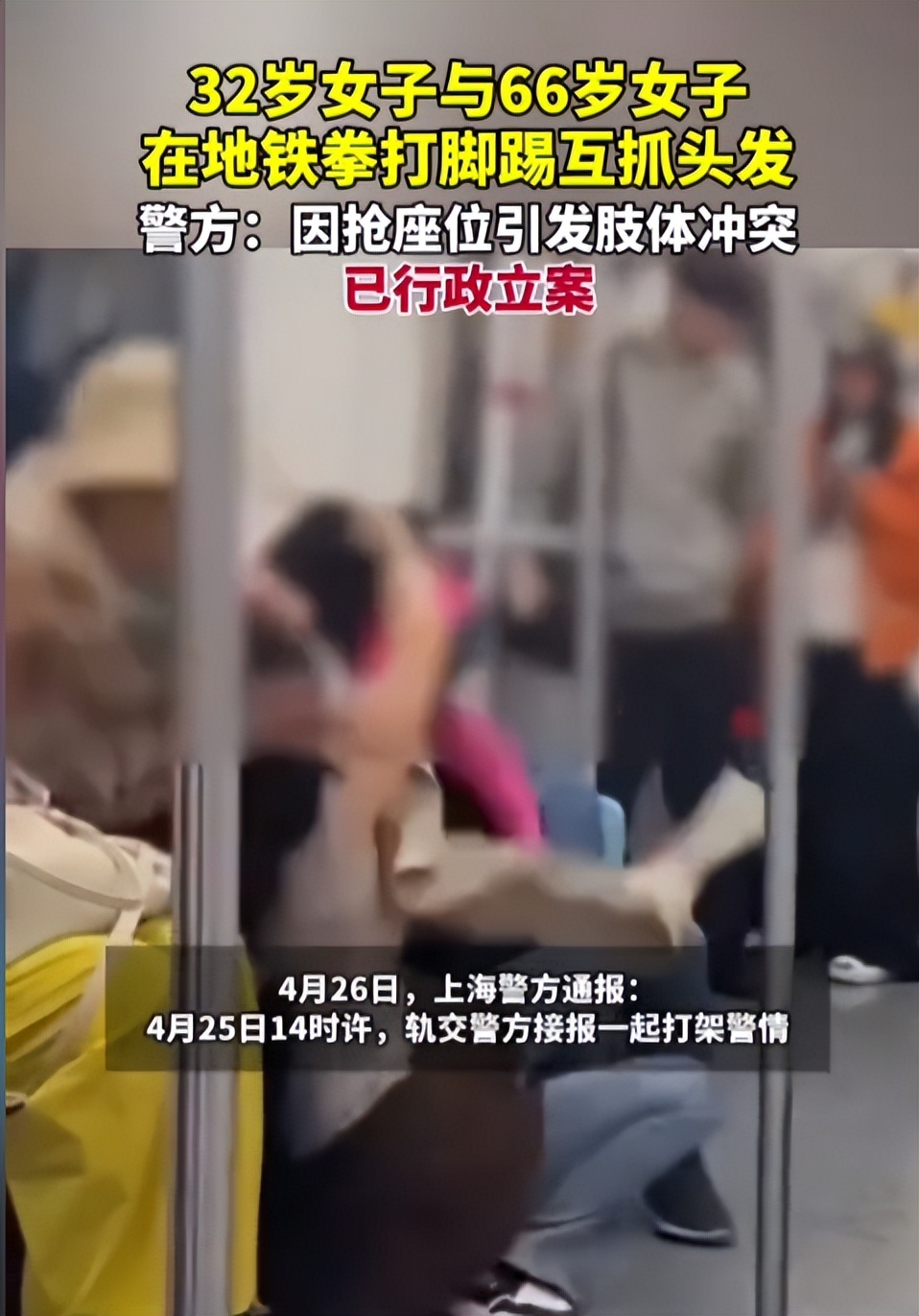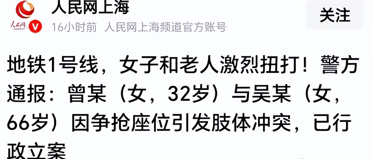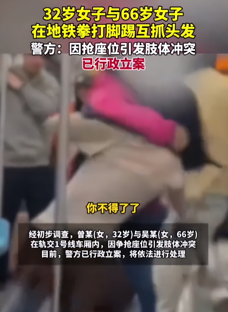 上海警方通报“女子在地铁与老人激烈扭打”:曾某(女,32岁)与吴某(女,66岁)因争抢座位引发肢体冲突,警方已行政立案----2026-04-26---红星新闻