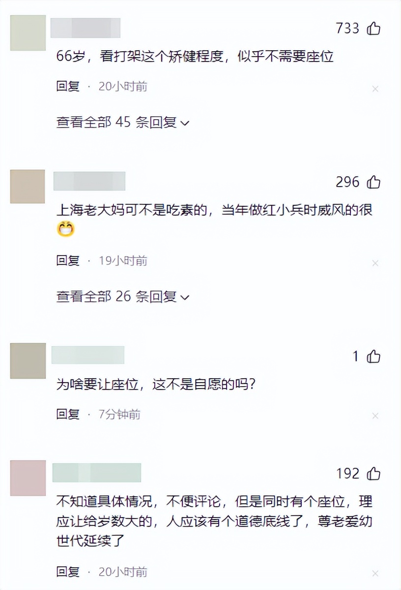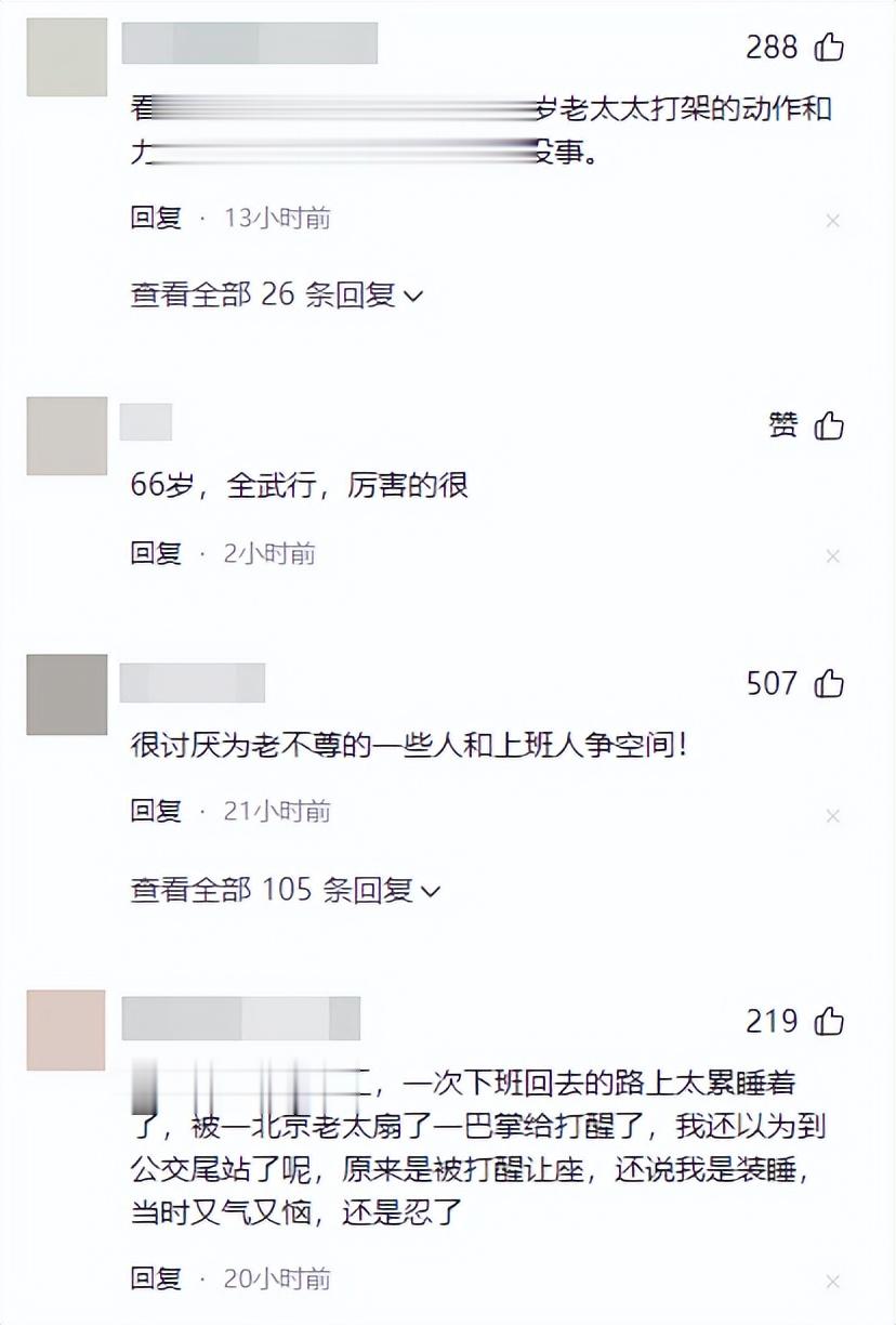 也有网友称看了视频,不谈对错,看那66岁老太太打架的动作和力度,似乎站完整趟地铁应该都没事。
