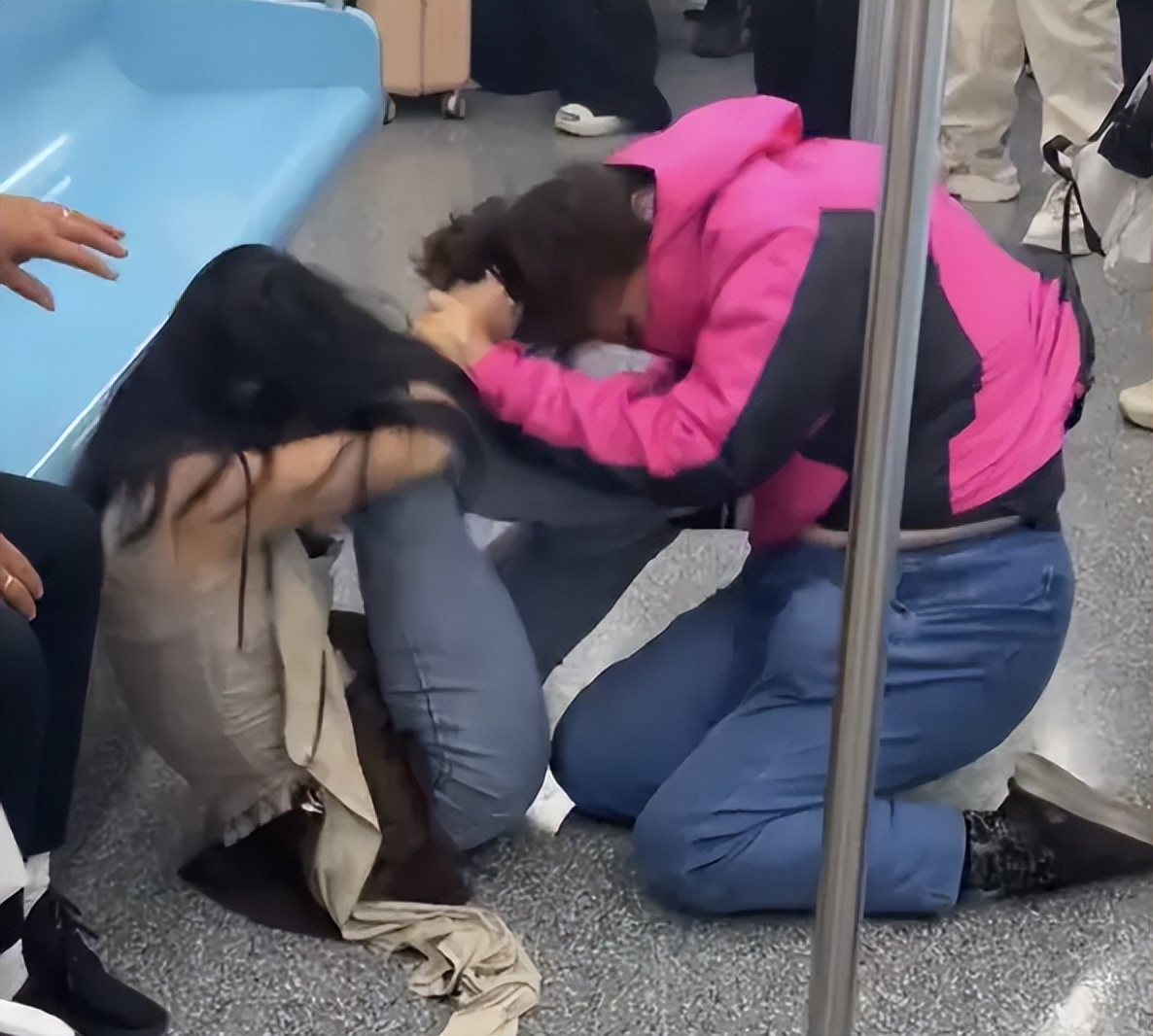 该说不说,这俩人的战斗力也是相当凶猛,头发被薅得满地都是,衣服撕破了,纽扣崩飞了,有乘客形容“脸都抓烂了”。