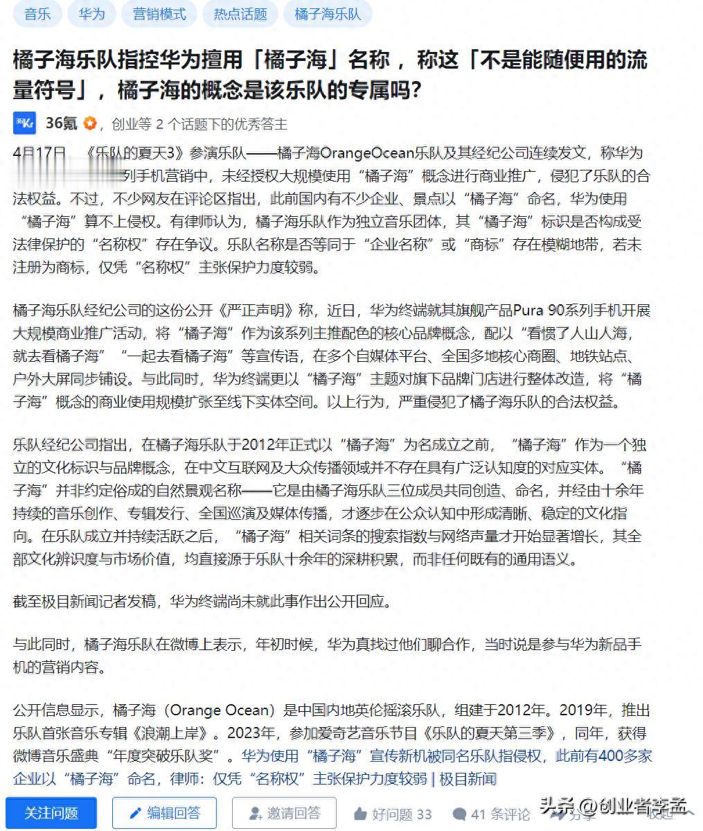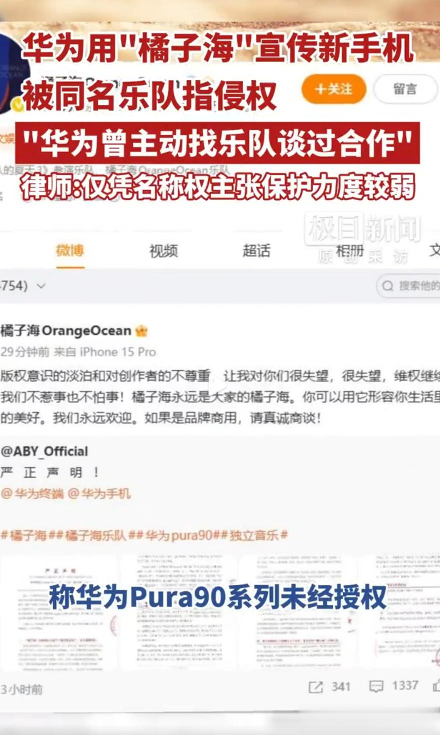橘子海乐队指控华为擅用「橘子海」名称 ,称这「不是能随便用的流量符号」,橘子海的概念是该乐队的专属吗?