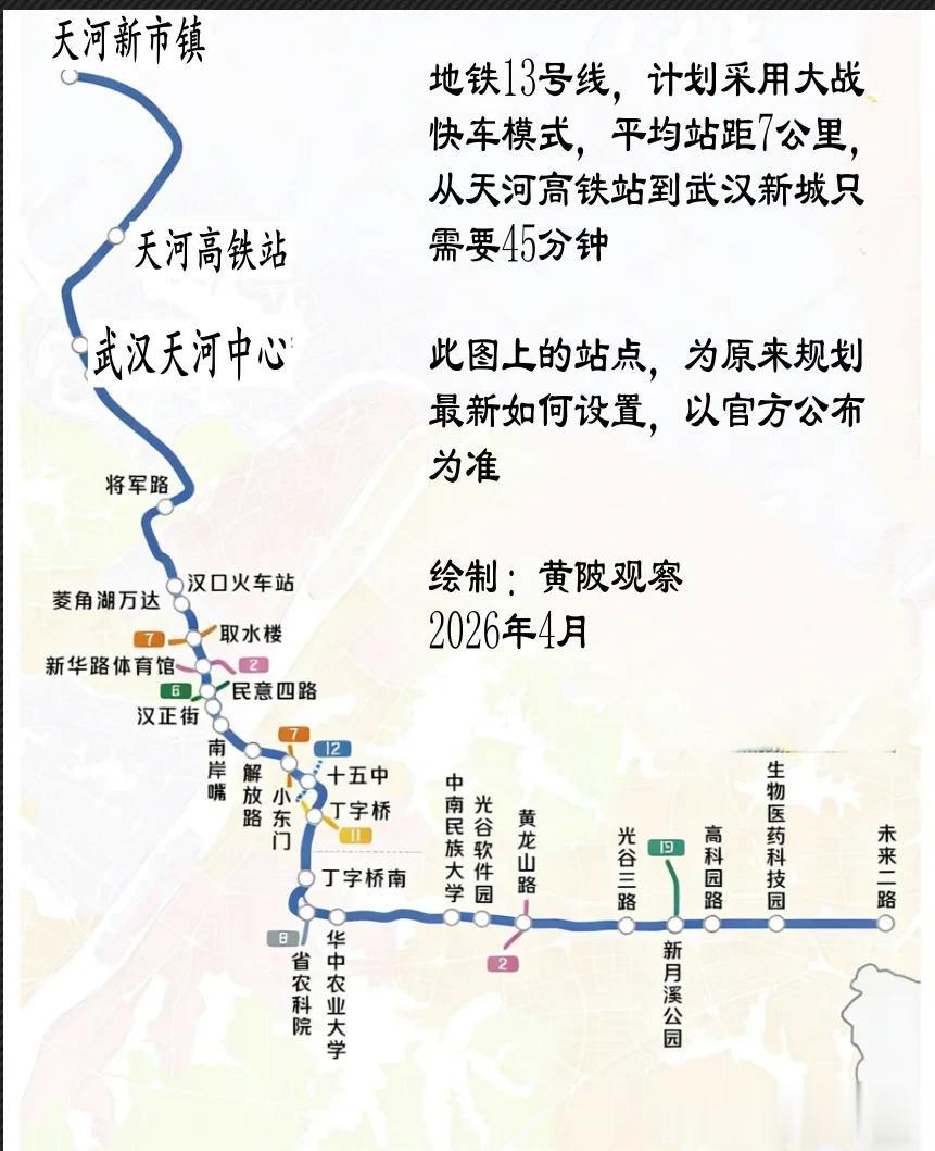 理论上,13号线1期应该从黄陂天河修到武昌小东门才对(而不是从武汉新城修到汉口火车站),但光谷作为宇宙中心,有钱有人的情况下,黄陂没有办法抢得过的