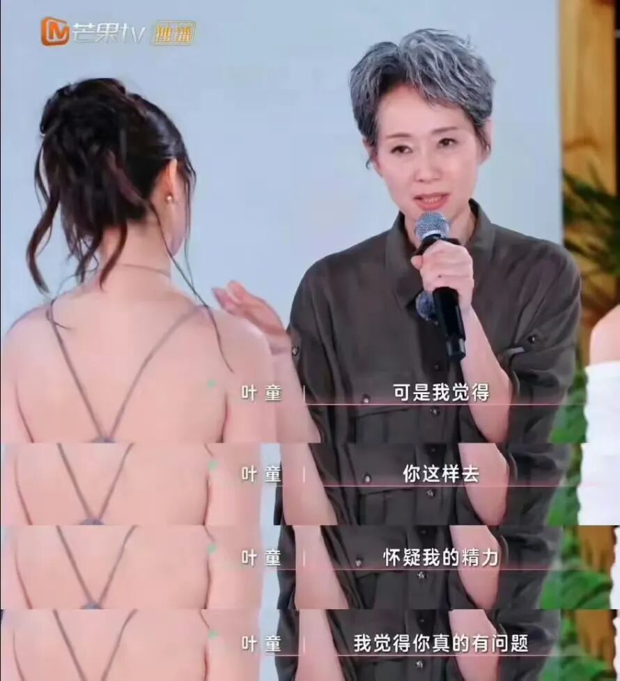还有后来房琪想要唱跳而质疑叶童的体力。叶童半开玩笑半认真的回应:“我玩得很开心。但你怀疑我的精力,你才真有问题!”