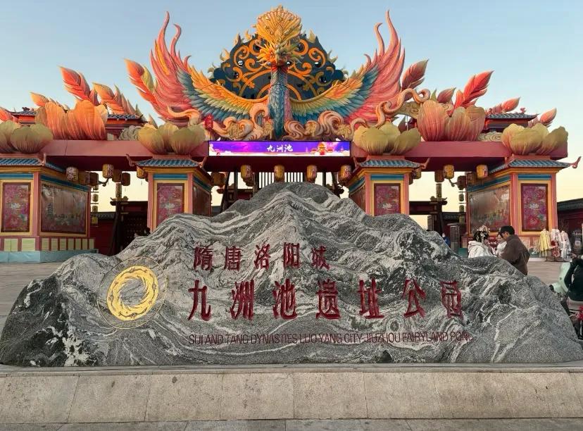 武则天皇家御苑:隋唐洛阳城九洲池遗址九洲池是宫城核心御苑,为武则天宴游理政的后花园,以东海九洲意境造园,水系环绕、殿宇参差,是洛阳最具唐风园林意境的遗址景区。瑶光殿为全园制高点,登楼可俯瞰碧波廊桥,白日亭台清雅、花木扶疏,夜晚水幕灯光交织,《风起神都》实景演艺氛围感拉满,再现皇家夜游盛景。园内仁寿桥、乌头门、回廊均严格复刻唐代规制,一步一景,春有繁花、夏享清凉、秋见静美,既是汉服摄影胜地,也是亲子休闲、研学打卡的优选之地,漫步池边,唐风雅韵扑面而来。