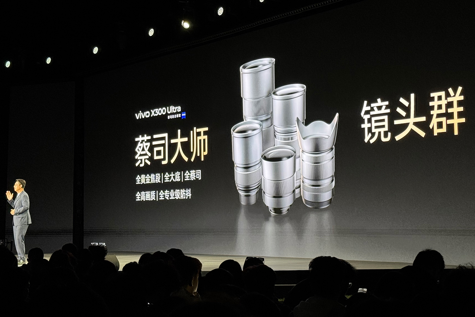 在vivo X系列春季新品发布会上,vivo副总裁、产品副总裁黄韬和vivo X系列产品高级总监赵典多次强调“镜头群”和“全焦段”。vivo X300 Ultra后置三颗旗舰级蔡司主摄,搭配两款蔡司增距镜,组成全黄金焦段、全大底、全蔡司、全高画质、全专业级防抖的“五全”蔡司大师镜头群。14mm-400mm全焦段直出2500万像素照片,以及全焦段高规格视频的拍摄支持,是这一代vivo超大杯旗舰的十足底气。