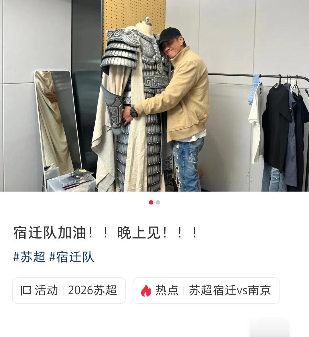 到达时还在网上亲自晒出了和盔甲的合照