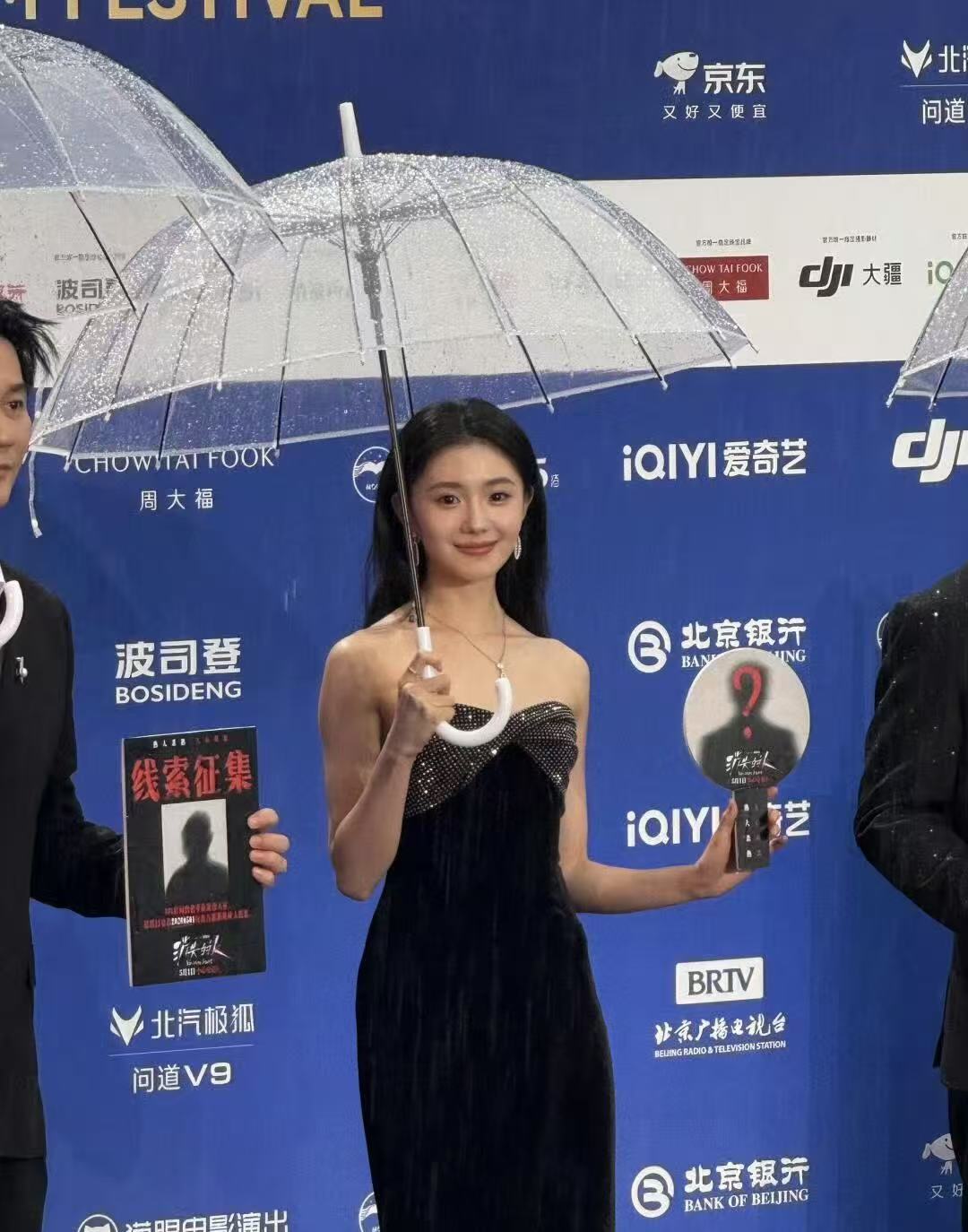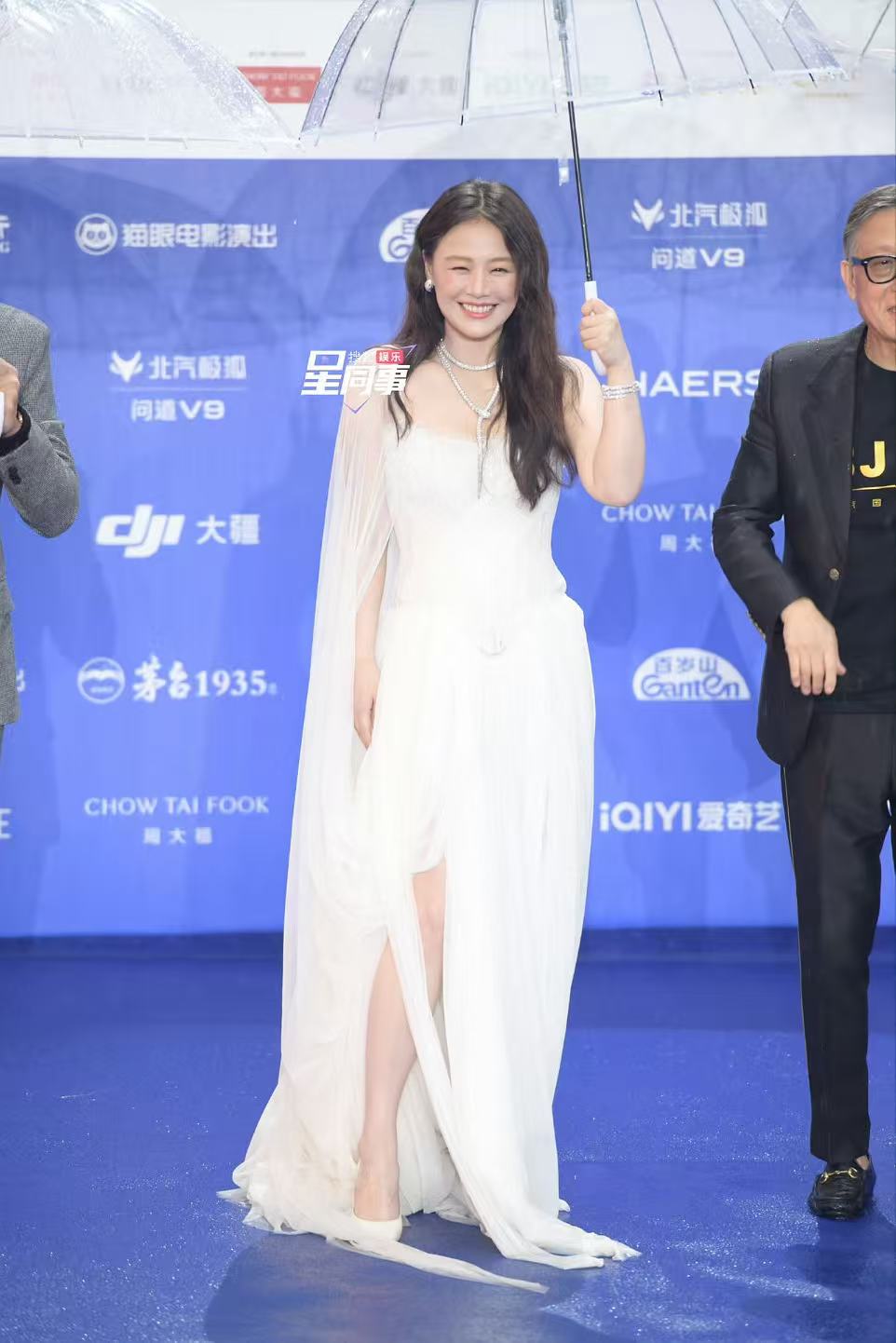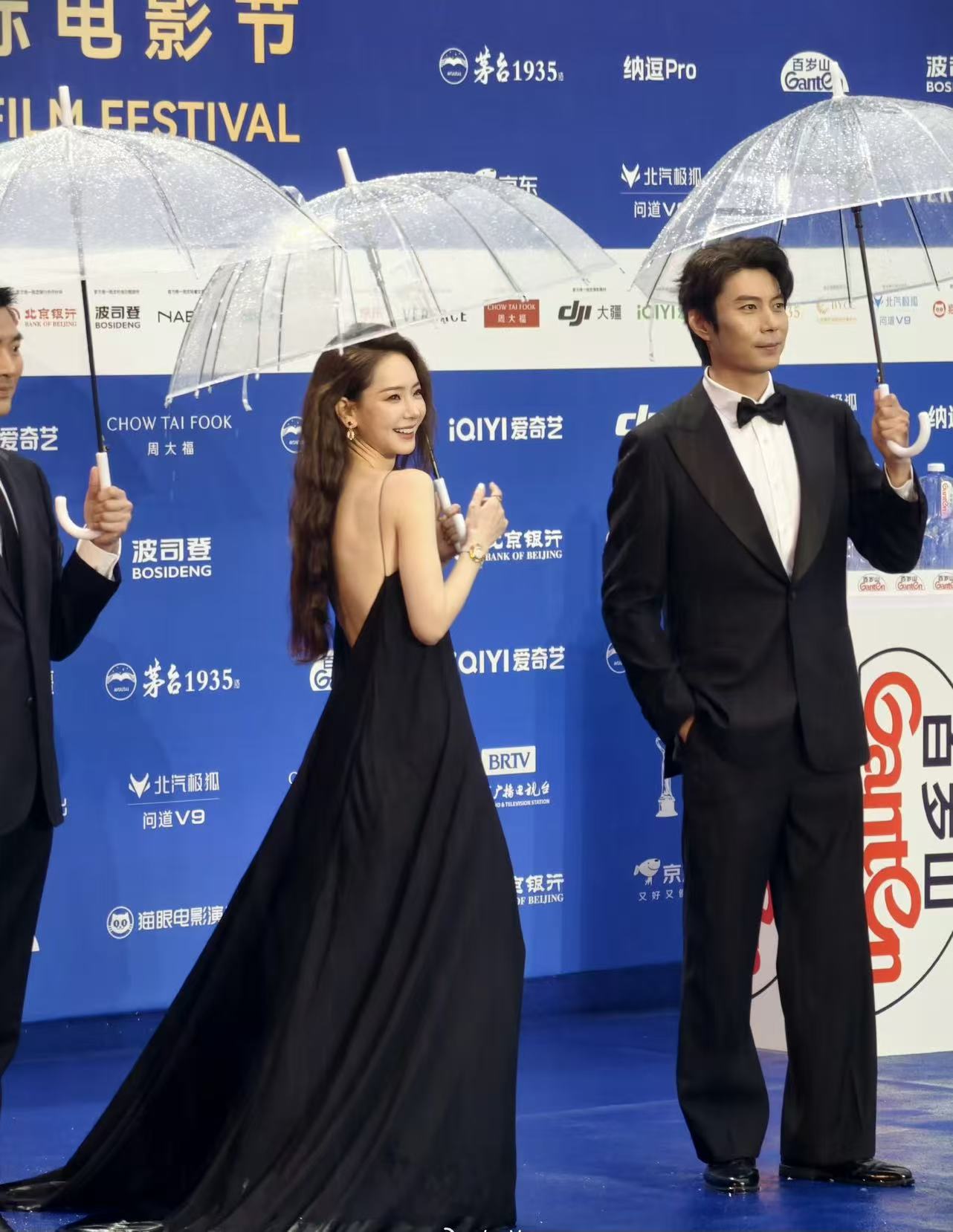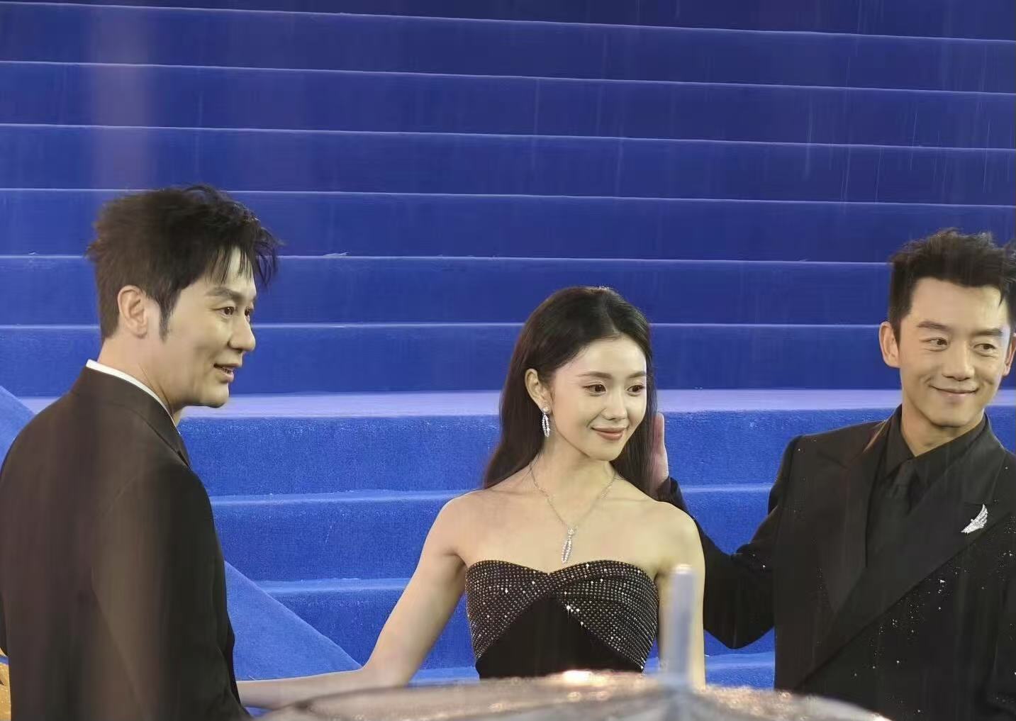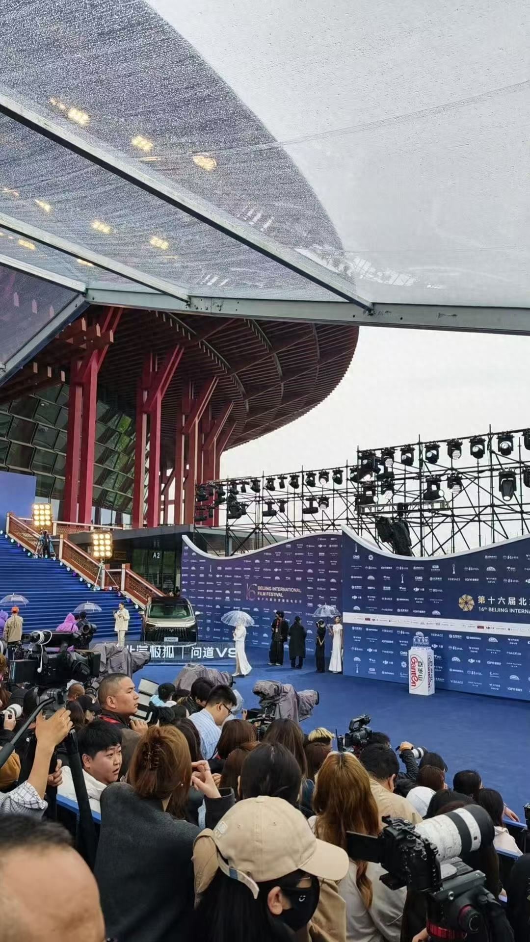 北京国际电影节开幕式在4月16日举行,北京下起了雨,也挡不住大家的热情。这次没有红色的红毯,明星们直接走完平地,然后直接上到楼梯上。