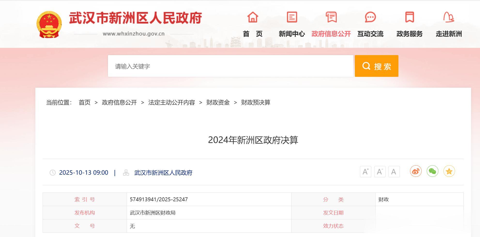 以下信息来源于新洲官网公布的《2024年新洲区政府决算》。