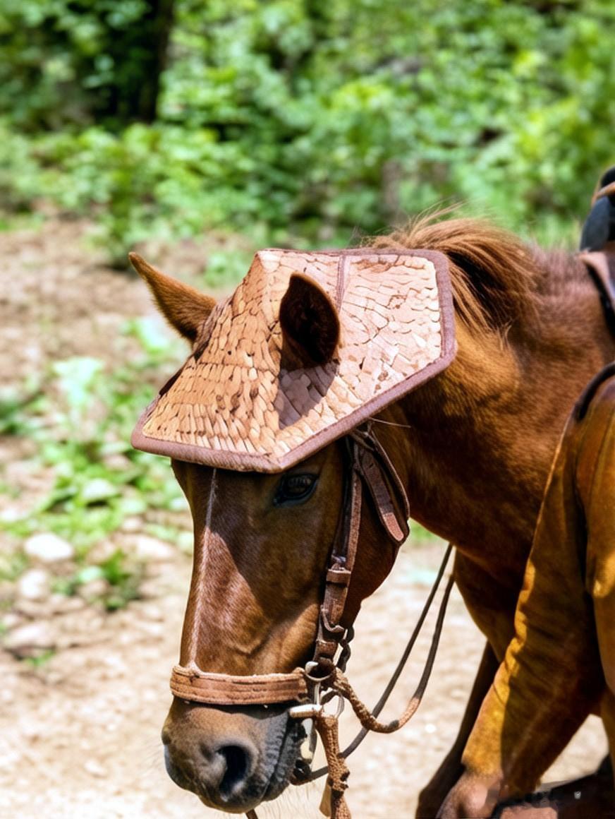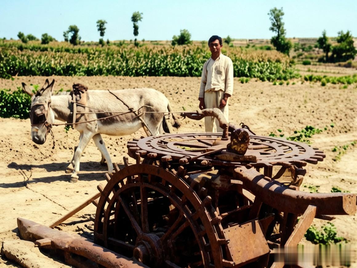 这是一张日本东洋马的头部特写,直到这时才看清,原来马头上的遮阳帽是用当年农民常戴的六角草帽改装的。