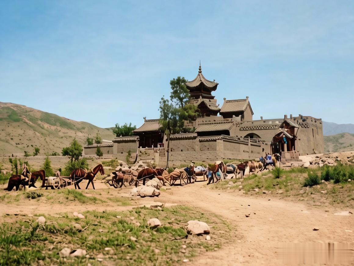 日本辎重部队经过一个古色古香的建筑群。地下文物看陕西,地上文物看山西,山西地表上的古建筑数不胜数,已很难考证这个建筑群具体在什么地方了。